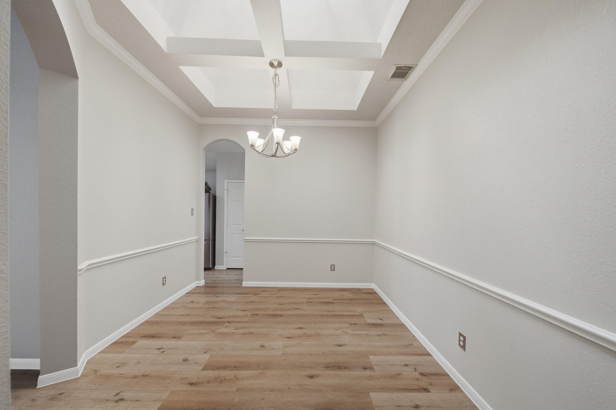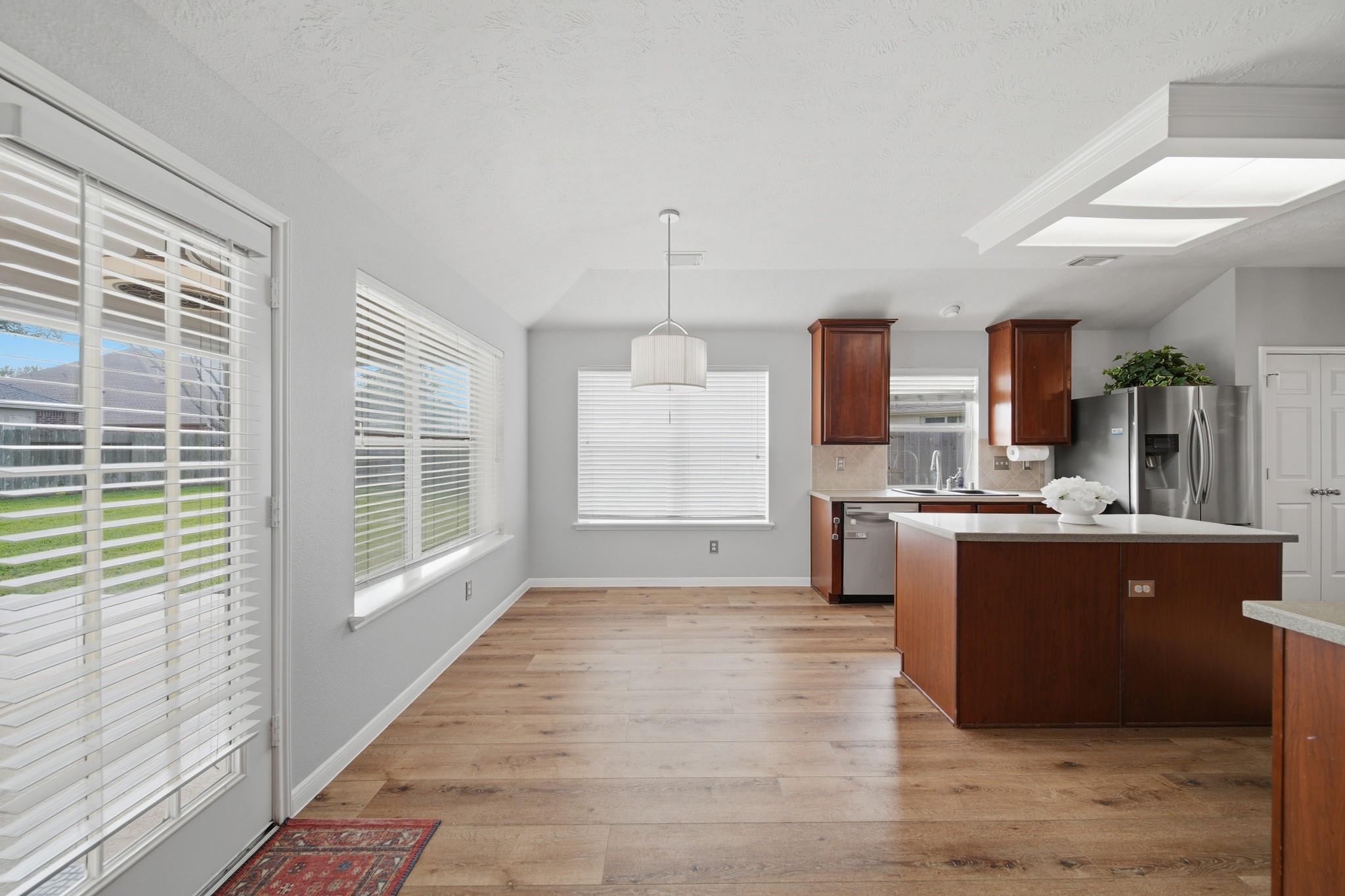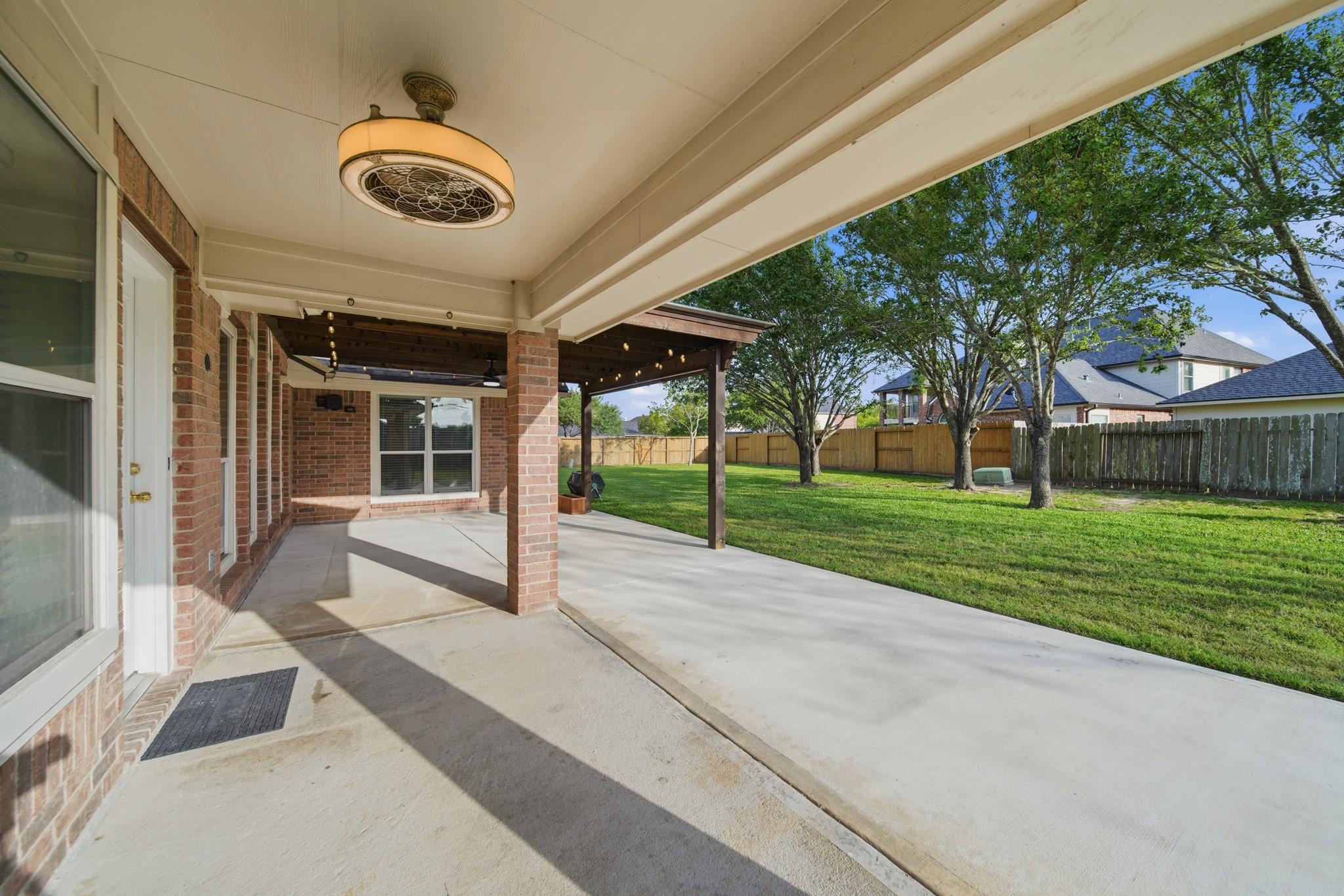 Beautifully maintained one-story home tucked on a quiet cul-de-sac in highly desirable South Shore Harbour. This inviting 3-bedroom, 2-bath home features a new roof (2022), HVAC system ( 2024), updated primary shower, and durable LVP flooring throughout, with carpet in the bedrooms for added comfort. A cozy fireplace anchors the high-ceiling living room, creating a warm, welcoming space. A skylight brightens the elegant formal dining room with natural light. The oversized 2-car garage includes a 5-ft extension and epoxy flooring, ideal for storage or a workspace. The open-concept layout offers a bright living area that flows seamlessly into the island kitchen with stainless steel appliances. The spacious primary suite includes a sitting area. French doors lead to a private study -ideal for working at home. Step outside to a gigantic backyard with plenty of room for a pool, plus a covered patio, extended concrete, and pergola-for relaxing and entertaining. A House you can call a home.