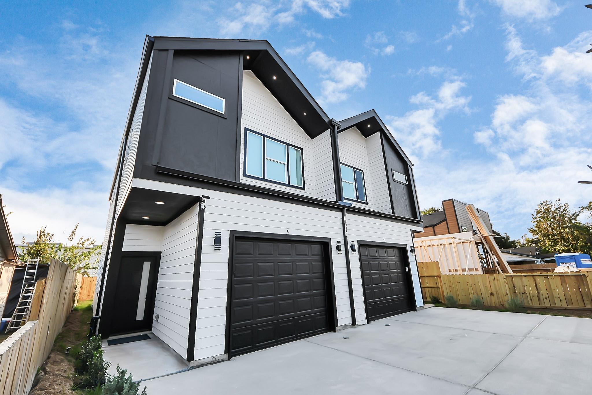 Stunning New Construction Duplex offering modern design and functionality. Each unit features 3 spacious bedrooms, 2.5 baths, and an open-concept layout with 10’ ceilings. Gourmet kitchens include quartz countertops, tile backsplash, large islands with breakfast areas, stainless steel appliances (including a refrigerator), ample cabinetry, and walk-in pantries. Enjoy luxury vinyl plank and tile flooring throughout. Additional highlights: mud bench at entry, study nook/work space, and an attached garage. Upstairs, primary suites feature en-suite baths with double sinks and frameless glass showers; secondary baths also offer dual vanities. Property is fenced in with a driveway gate. Perfectly situated just minutes from NRG Stadium, the Texas Medical Center, and with quick access to Hwy 610 and Hwy 288, this duplex is ideal for both owner-occupants and savvy investors alike. Schedule your private showing today! All room dimensions and school assignments to be verified by the buyer.