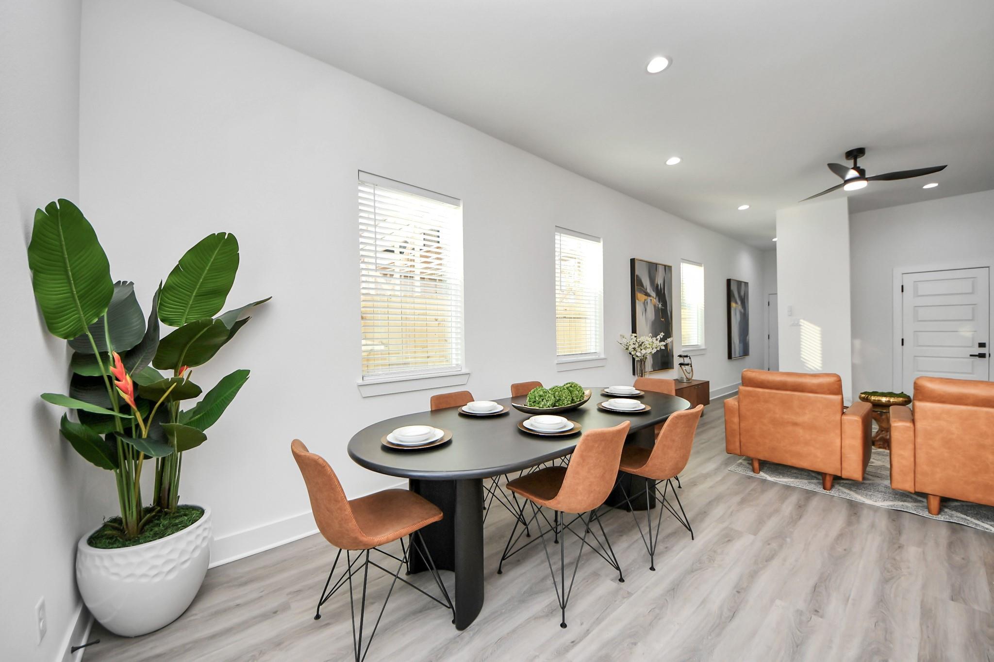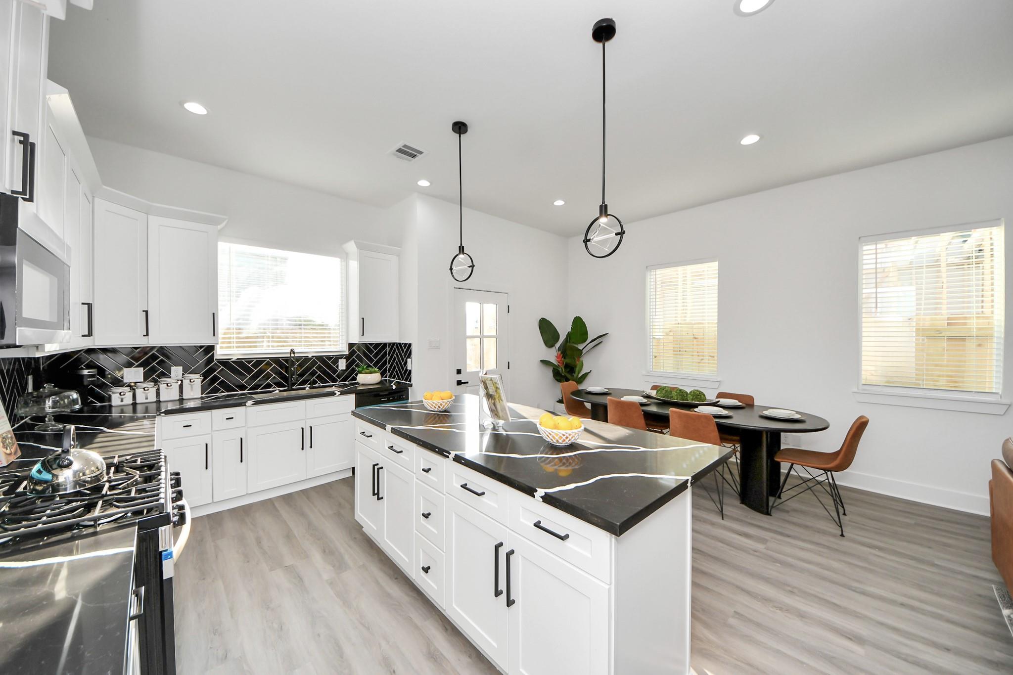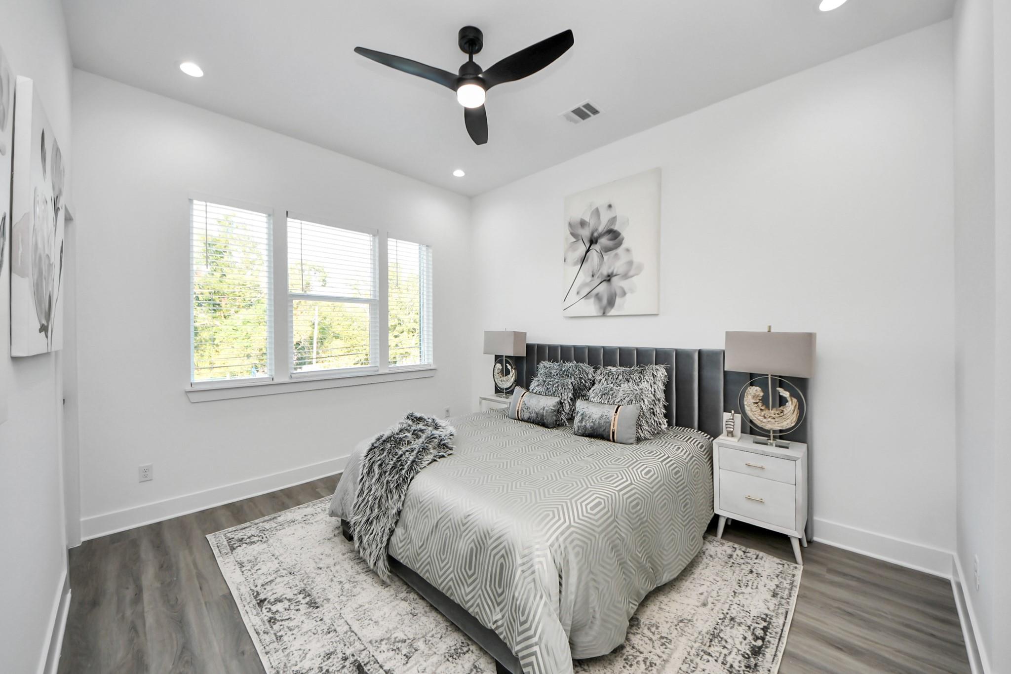 Stunning New Construction Duplex offering modern design and functionality. Each unit features 3 spacious bedrooms, 2.5 baths, and an open-concept layout with 10’ ceilings. Gourmet kitchens include quartz countertops, tile backsplash, large islands with breakfast areas, stainless steel appliances (including a refrigerator), ample cabinetry, and walk-in pantries. Enjoy luxury vinyl plank and tile flooring throughout. Additional highlights: mud bench at entry, study nook/work space, and an attached garage. Upstairs, primary suites feature en-suite baths with double sinks and frameless glass showers; secondary baths also offer dual vanities. Property is fenced in with a driveway gate. Perfectly situated just minutes from NRG Stadium, the Texas Medical Center, and with quick access to Hwy 610 and Hwy 288. This duplex is ideal for both owner-occupants and savvy investors alike. Schedule your private showing today! All room dimensions and school assignments to be verified by the buyer.