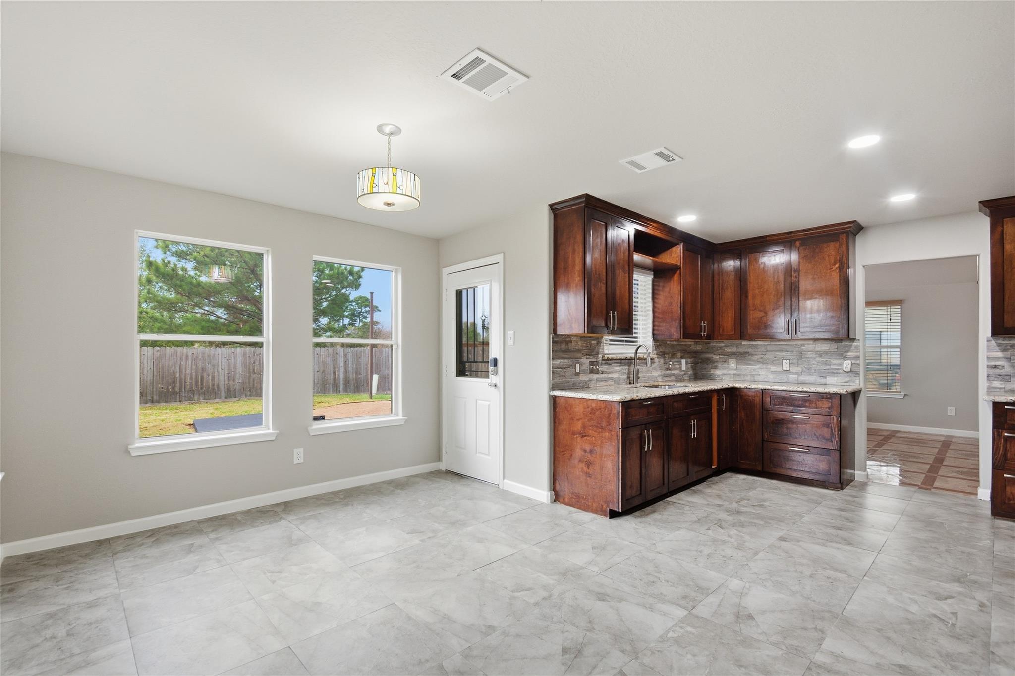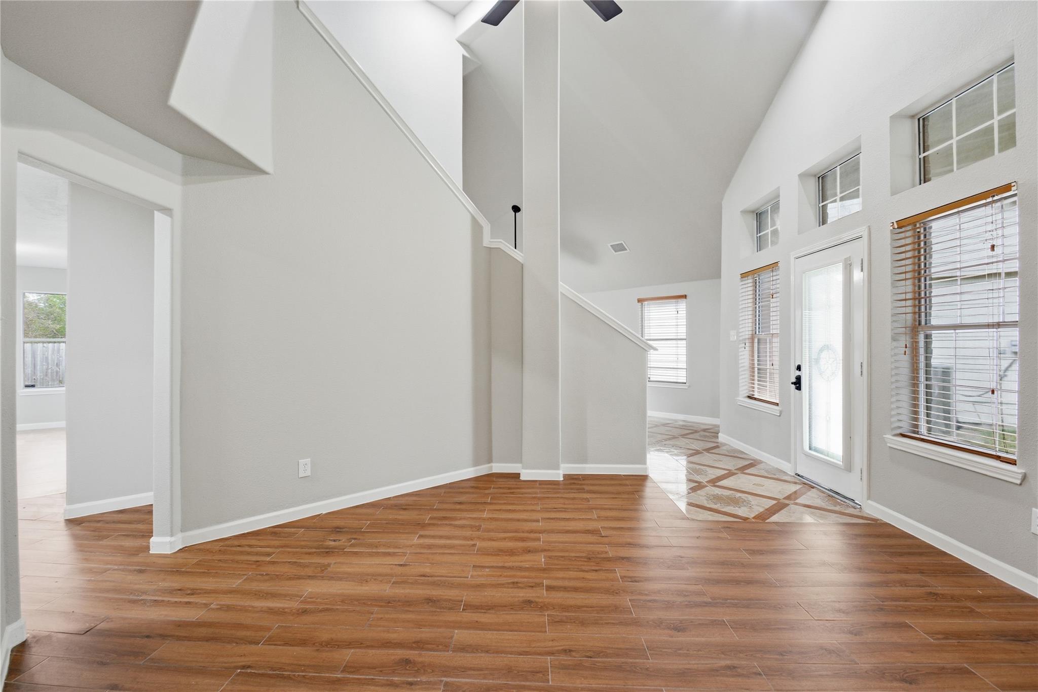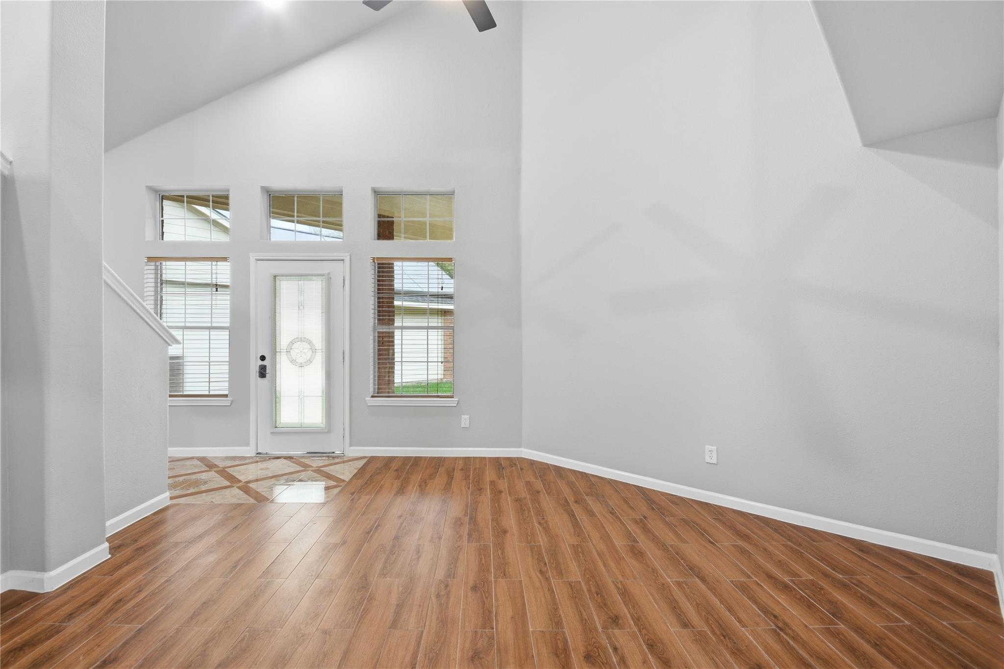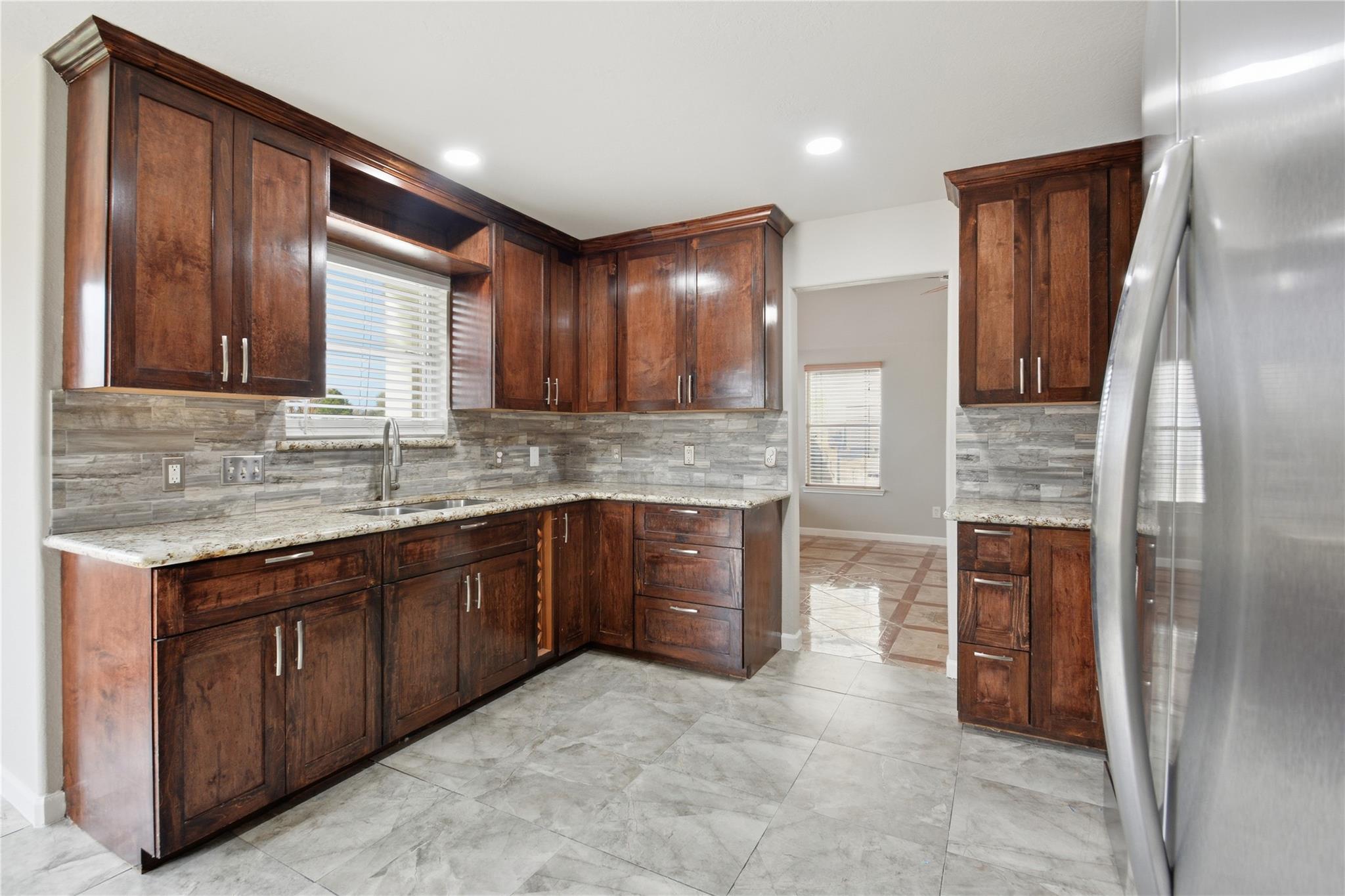 Nicely updated 2 story, 3 bedroom, 2.5 bath home with new appliances - washer/dryer, gas range, microwave, and refrigerator, all of which convey with property. Fresh paint inside and out, high ceilings, granite counters, and refinished cabinets in kitchen. New water heater recently installed. Immaculate garage with wood look tile flooring. All bedrooms upstairs with tile, wood, and laminate flooring, no carpet in home. New fence on one side of backyard, no back neighbors. Convenient access to Beltway 8, backyard features new fire pit and resurfaced patio. Excellent, move-in ready condition in a great location.
