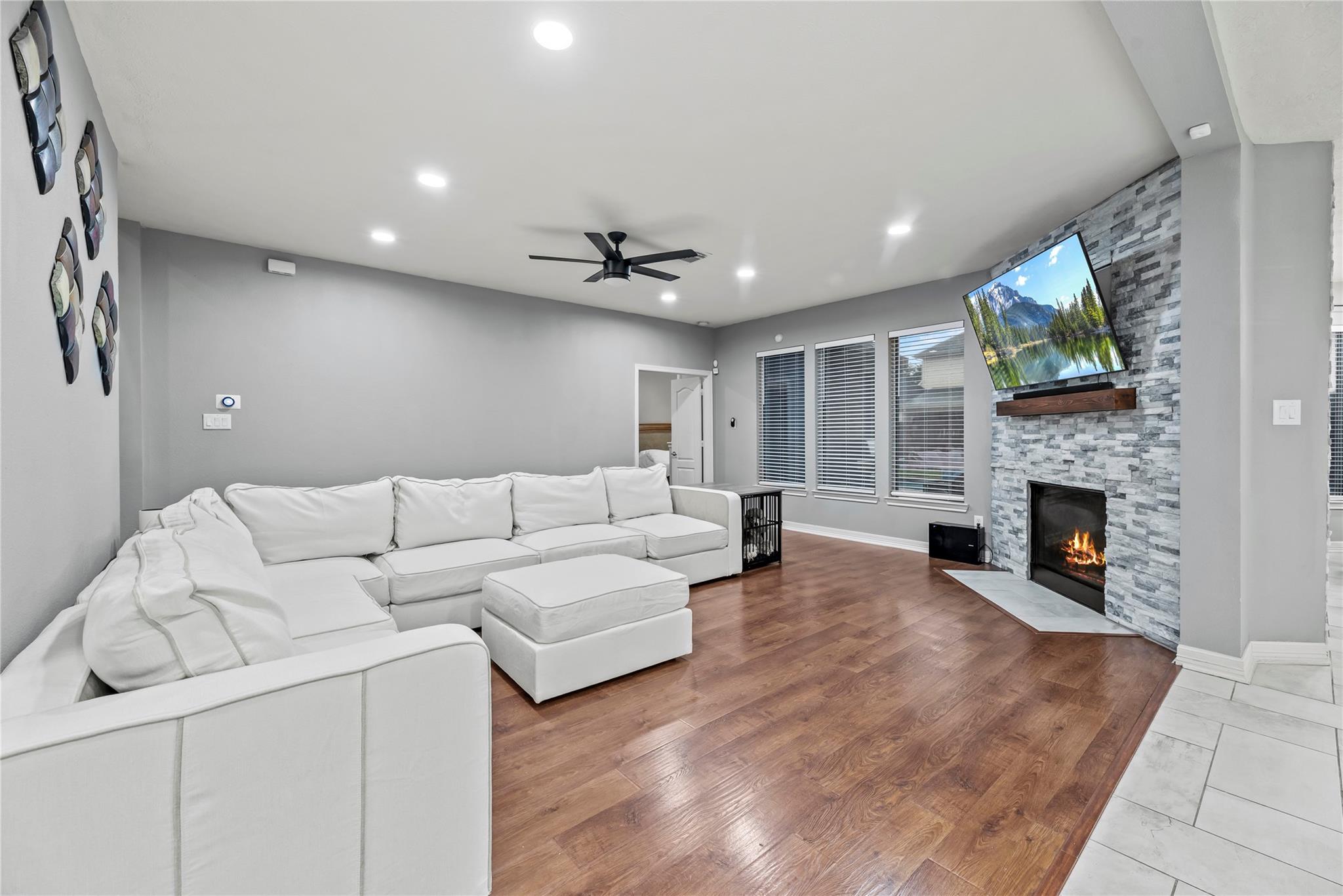 InteriorFireplace:3/Electric Fireplace,Gas Connections,Gaslog FireplaceFloors:Carpet,Engineered Wood,TileBathroom Description:Half Bath,Primary Bath: Double Sinks,Primary Bath: Separate Shower,Primary Bath: Soaking Tub,Secondary Bath(s): Shower Only,Secondary Bath(s): Tub/Shower ComboBedroom Desc:Primary Bed - 1st Floor,Sitting Area,Walk-In ClosetKitchen Desc:Breakfast Bar,Island w/o Cooktop,Kitchen open to Family Room,Soft Closing Cabinets,Soft Closing Drawers,Under Cabinet Lighting,Walk-in PantryRoom Description:Family Room,Formal Dining,Gameroom Up,Home Office/Study,Living Area - 1st Floor,Living Area - 2nd Floor,Media,Utility Room in HouseHeating:Central GasCooling:Central ElectricConnections:Electric Dryer Connections,Gas Dryer Connections,Washer ConnectionsDishwasher:YesDisposal:YesMicrowave:YesRange:Gas CooktopOven:Electric OvenEnergy Feature:Attic Vents,Ceiling Fans,Digital Program Thermostat,Insulation - Blown CelluloseInterior:Alarm System - Owned,Fire/Smoke Alarm