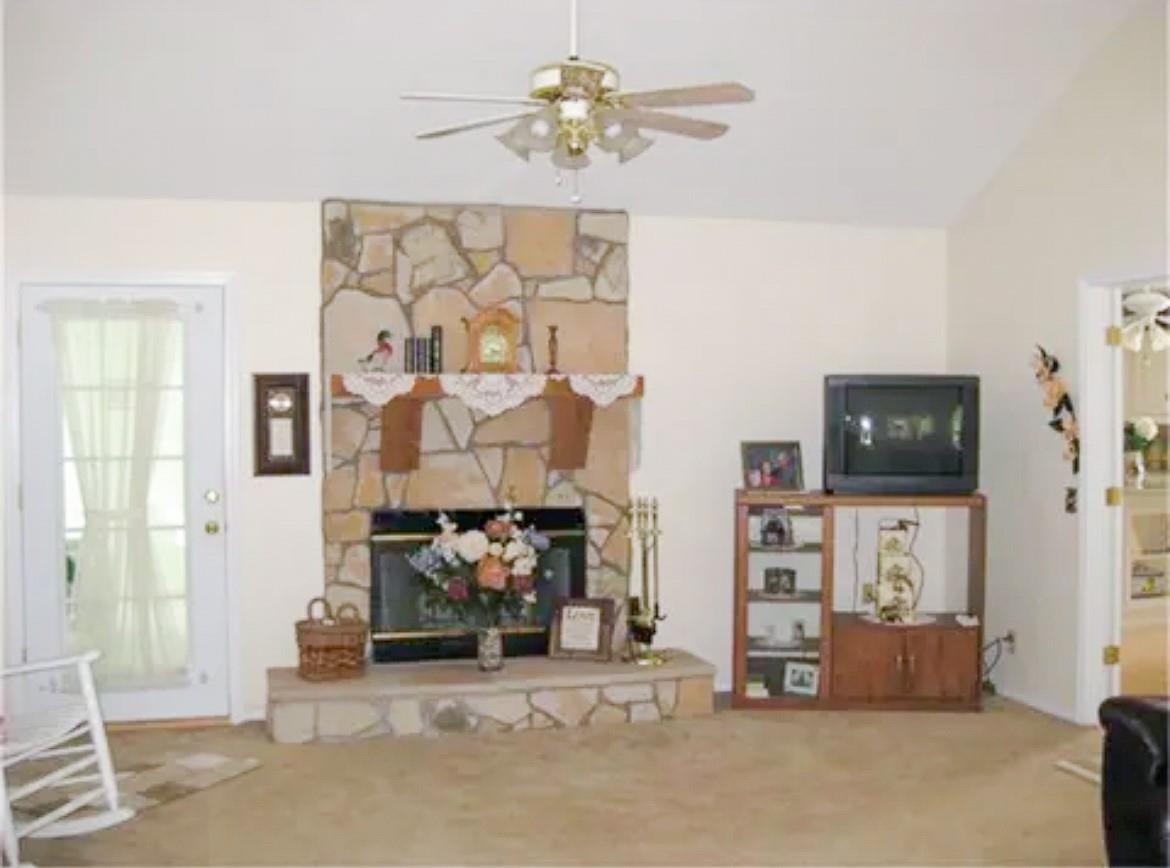 InteriorFireplace:1/Freestanding,Wood Burning FireplaceFloors:Carpet,Laminate,VinylRoom Description:1 Living Area,Breakfast Room,Den,Formal Dining,Garage Apartment,Guest Suite,Kitchen/Dining Combo,Loft,Quarters/Guest HouseKitchen Desc:Breakfast Bar,Island w/ Cooktop,Pots/Pans DrawersBathroom Description:Secondary Bath(s): Tub/Shower ComboBedroom Desc:All Bedrooms DownHeating:Central ElectricCooling:Central ElectricConnections:Electric Dryer ConnectionsRange:Electric CooktopOven:Electric OvenEnergy Feature:Ceiling FansInterior:2 Staircases,Fire/Smoke Alarm