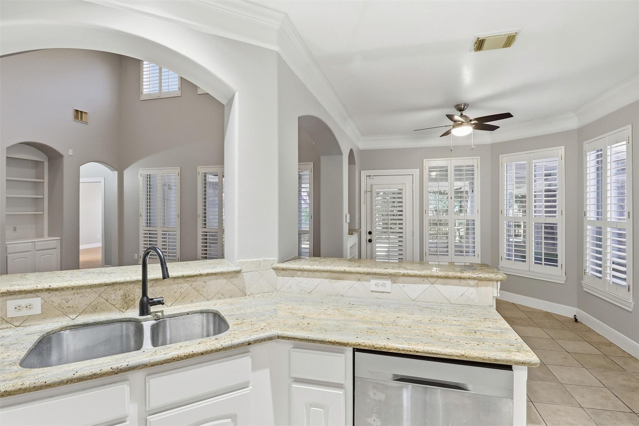 Discover the perfect blend of elegance, space, functionality in this home nestled in desirable Copper Village neighborhood.Former David Powers Model Home 5-bedroom,4.5-bathroom residence offers rare combination of comfort, water view, greenbelt location for added privacy, serenity. NO CARPET.Freshly painted.Primary bed with spa-like Jacuzzi tub & dual vanities,Formal Dining Room & Sitting Area–perfect for entertaining,Study has built in book shelves. The game room is HUGE and set up to be a media room too. Elegant plantation shutters and Crown Molding throughout adds timeless style. Detached Garage was the builder office so is a perfect setup for a family member that needs their own space.Patio overlooking the tranquil backyard w/water view.Enjoy evening sunsets from your covered patio, host unforgettable movie nights in the media room.Whether you’re looking for space to grow or simply love a beautiful view this home truly has it all, including corner lot.