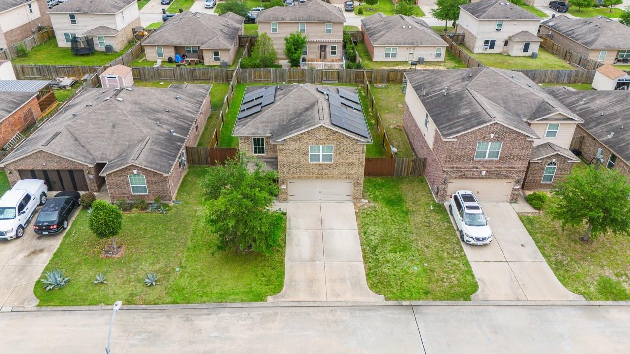 Welcome to 8715 Nicoli Creek—an inviting two-story home in the heart of Humble that blends comfort, efficiency, and convenience. Step inside to an open and airy floor plan filled with natural light, creating the perfect space for both everyday living and entertaining. Upstairs, all bedrooms are thoughtfully positioned to provide privacy and a quiet retreat. The generously sized primary suite offers a relaxing escape, while the additional bedrooms are perfect for family, guests, or a home office setup. One of the standout features of this home is the fully paid-off solar panel system—100% owned and included at no cost to the buyer. Enjoy significantly reduced energy expenses and the potential to virtually eliminate your electric bill. Location is a major advantage—just minutes from George Bush Airport and approximately three blocks from Jesse Jones Park & Nature Center, a 300+ acre outdoor destination featuring walking trails, playgrounds, a fitness center, pool, and dog park.