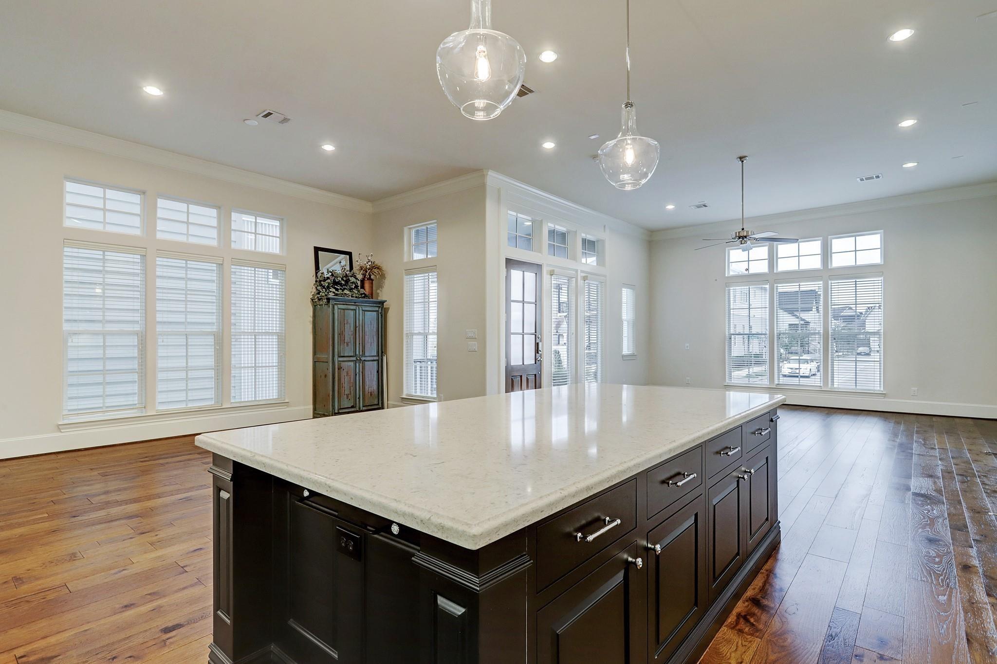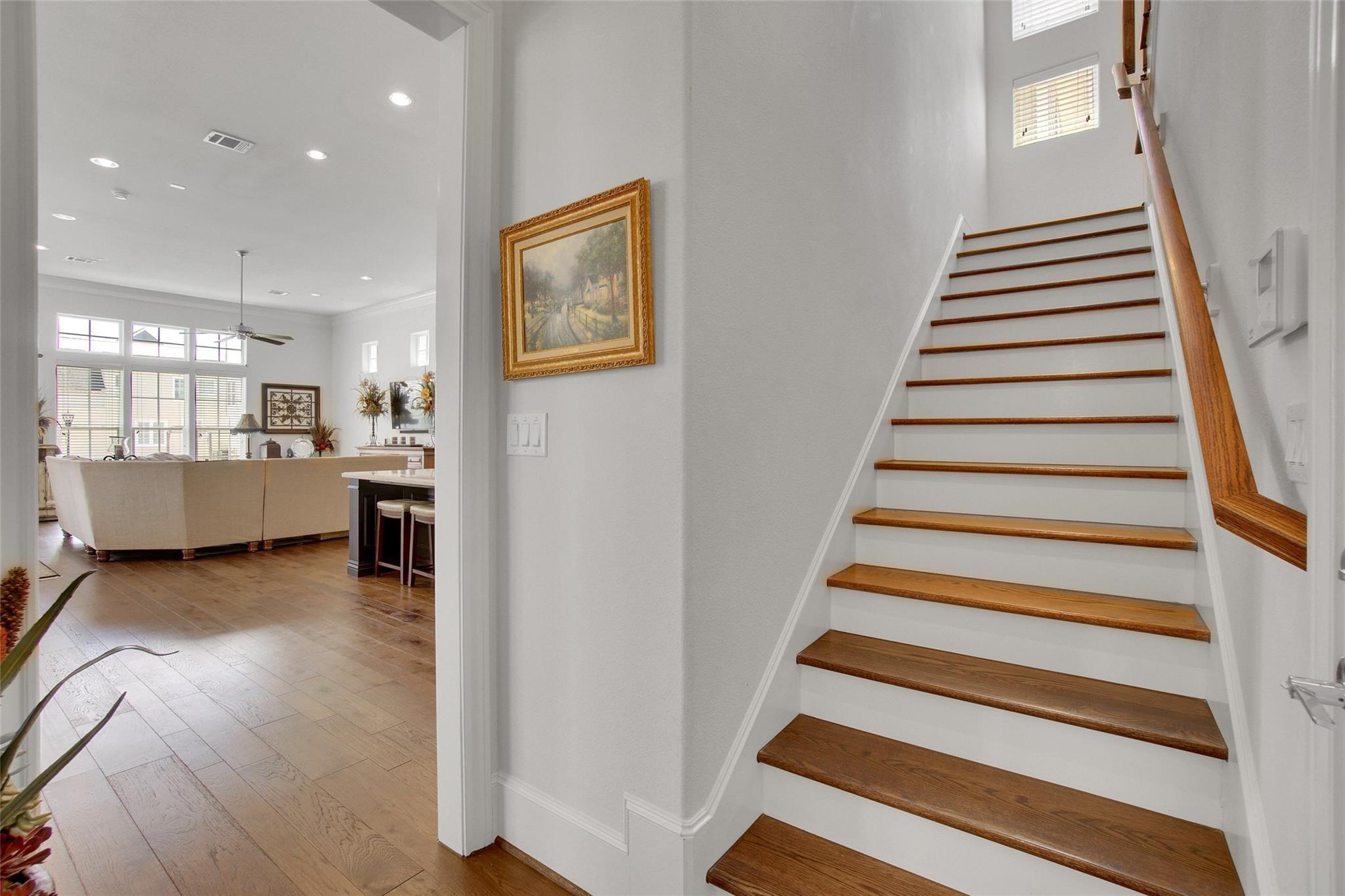 WOW Factor found! ENERGY EFFICIENT Four bedroom, three and 1/2 bath, Amsterdam style home in a gated community with large FRONT PORCH. Three (3) car garage with large built out wooded attic storage. High ceilings throughout the home. The kitchen features double stacked cabinets, oversized island with high end quartz countertop. Stainless steel Bosch appliances and updated pendant lighting above the island. Large oversized secondary bedrooms, which is hard to find. VERY LARGE master closet. ALL landscaping maintenance is done by the HOA. Two acre lake/ park area, two pools with walking trails The new Spring Branch hike and bike trail runs right next to the community.