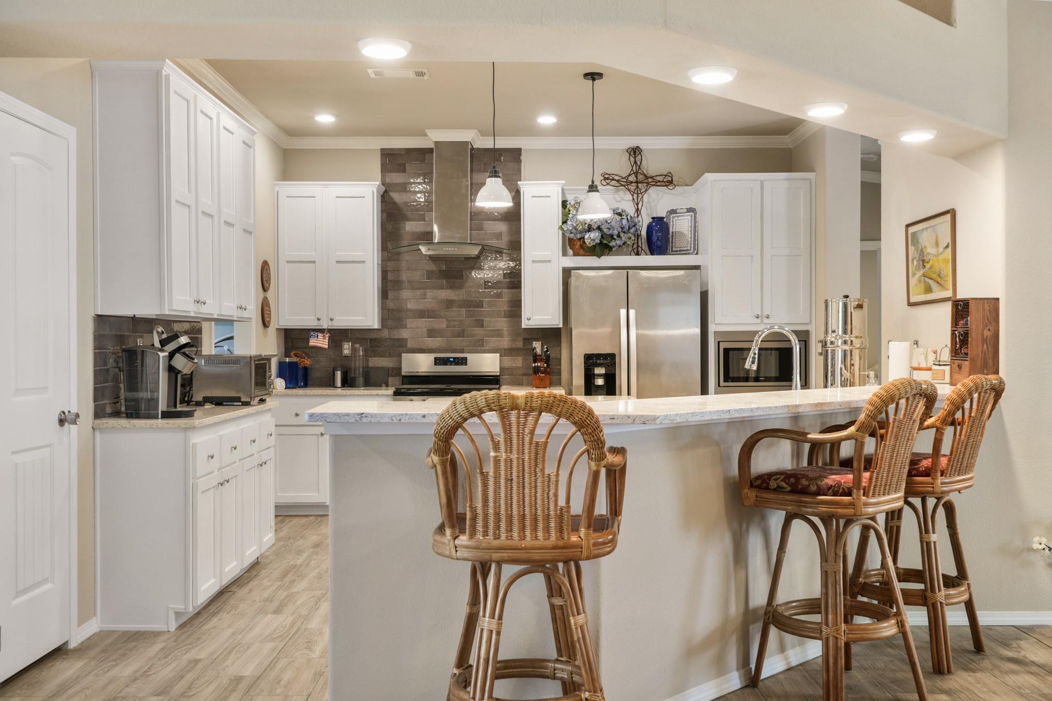 InteriorFireplace:1/Wood Burning FireplaceFloors:Carpet,VinylCountertop:BronziteBathroom Description:Primary Bath: Double Sinks,Primary Bath: Separate Shower,Primary Bath: Soaking Tub,Secondary Bath(s): Tub/Shower ComboBedroom Desc:All Bedrooms Down,Walk-In ClosetKitchen Desc:Breakfast Bar,Island w/o Cooktop,Kitchen open to Family Room,Pantry,Walk-in PantryRoom Description:1 Living Area,Breakfast Room,Family Room,Gameroom Down,Home Office/Study,Utility Room in HouseHeating:Central ElectricCooling:Central Electric,Other CoolingConnections:Electric Dryer Connections,Washer ConnectionsDishwasher:YesDisposal:NoCompactor:NoMicrowave:YesRange:Gas RangeOven:Electric OvenIce Maker:NoEnergy Feature:Ceiling Fans,Digital Program Thermostat,High-Efficiency HVAC,Insulated/Low-E windows,Insulation - Batt,Insulation - Blown FiberglassInterior:Crown Molding,Dryer Included,Fire/Smoke Alarm,Refrigerator Included,Washer Included,Window Coverings
