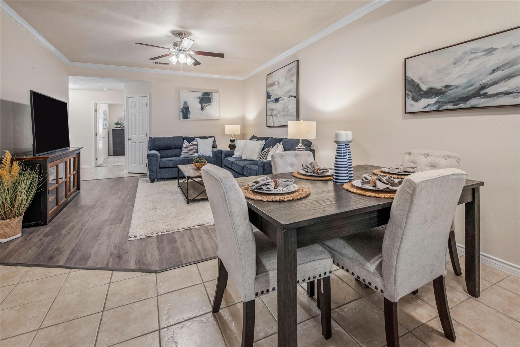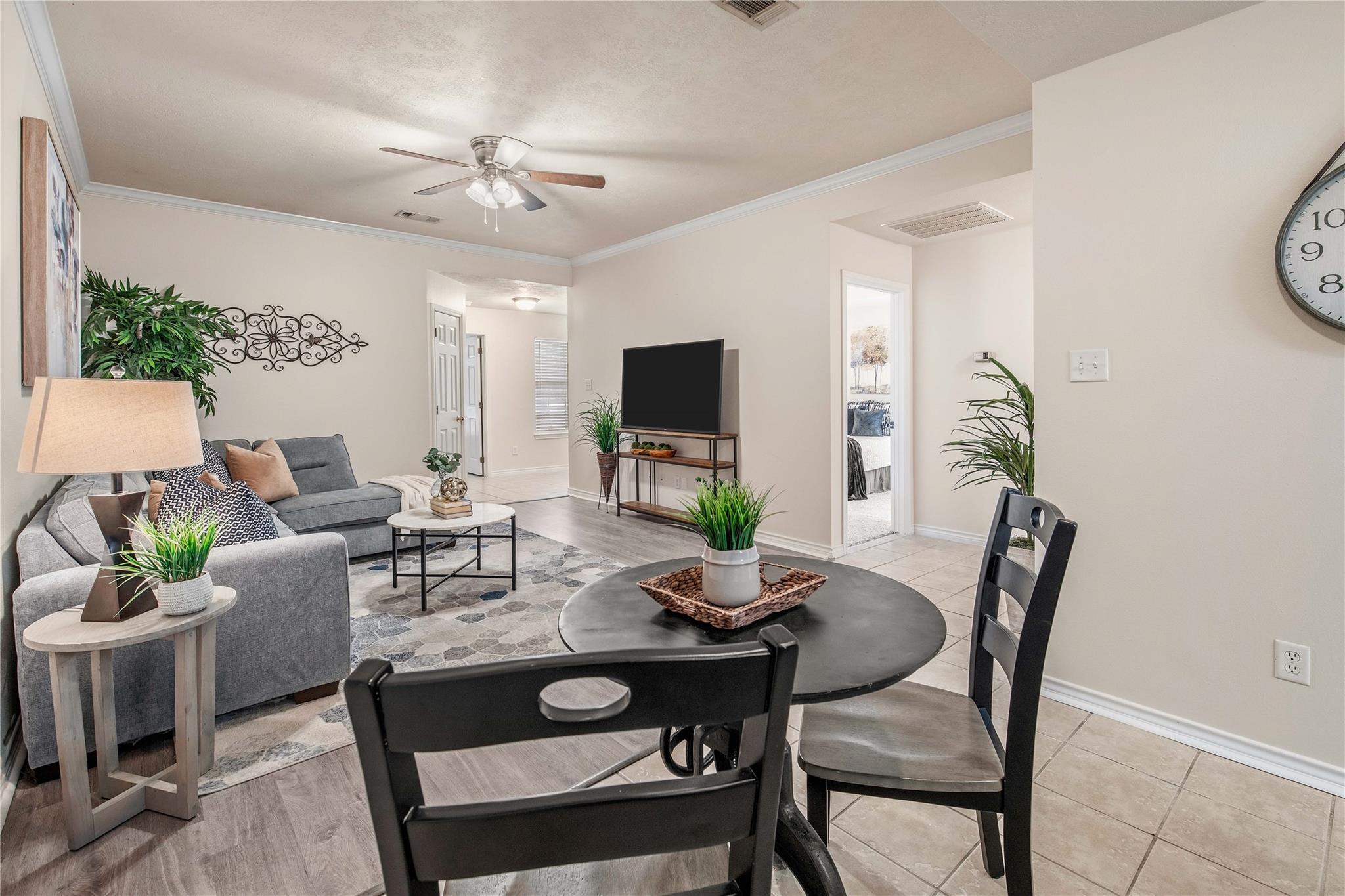Welcome to this rare South College Station duplex opportunity. Step inside either side and you’re greeted by a spacious living room with flexible layout options. Just off the living area, a formal dining space provides room for gatherings and various table arrangements. The kitchen features abundant counter and cabinet space, convenient appliances, a pantry, and an eating bar. Direct access to the back patio allows seamless indoor-outdoor living. Each unit includes three bedrooms, each with its own full bathroom for comfort and privacy. Outside, the fenced yard offers an oversized patio with room for multiple seating areas, while the side yard provides additional space for entertaining or relaxing. Allocated rear parking ensures convenient spots for you and your guests. Perfect for a student, multigenerational living, or as an investment property, this duplex blends flexibility, functionality, and location in desirable South College Station.