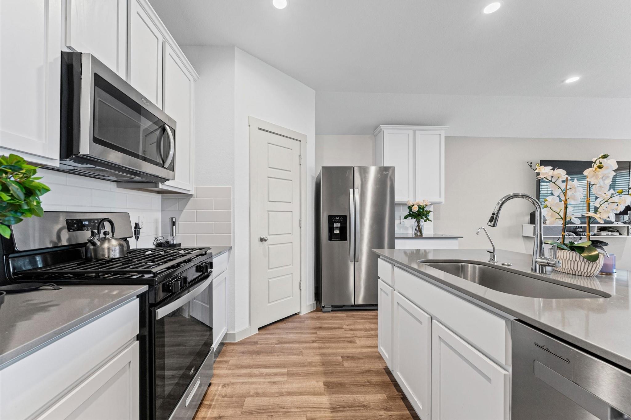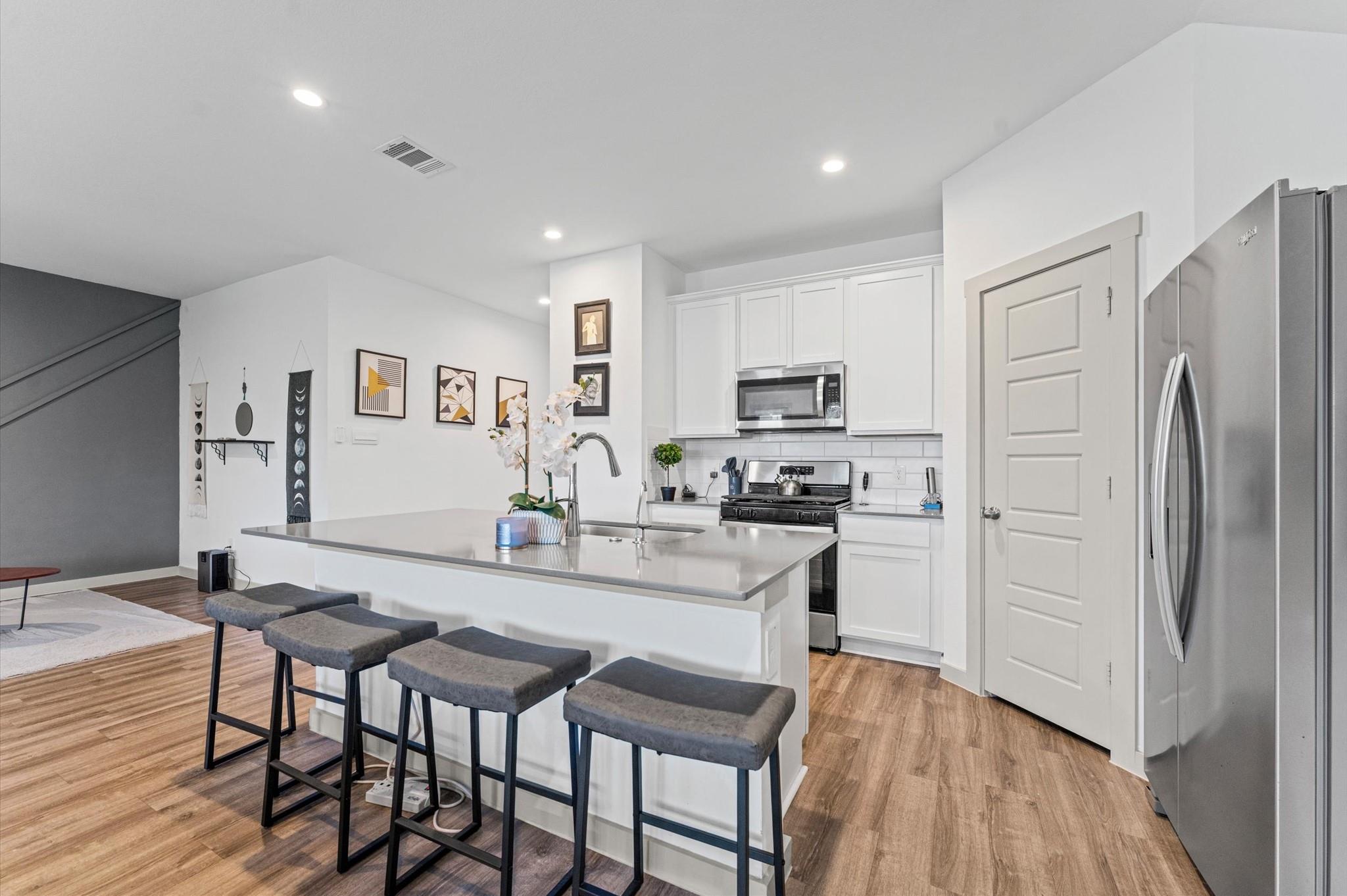 InteriorFireplace:1/FreestandingFloors:Carpet,Vinyl PlankCountertop:QuartzBathroom Description:Primary Bath: Double Sinks,Primary Bath: Separate Shower,Secondary Bath(s): Tub/Shower ComboBedroom Desc:All Bedrooms Down,En-Suite Bath,Split PlanKitchen Desc:Breakfast Bar,Island w/o Cooktop,Kitchen open to Family Room,Pantry,Walk-in PantryRoom Description:Breakfast Room,Family Room,Utility Room in HouseHeating:Central Electric,Central Gas,Solar AssistedCooling:Central Electric,Central Gas,Solar AssistedConnections:Electric Dryer Connections,Washer ConnectionsDishwasher:YesDisposal:YesMicrowave:YesRange:Gas Cooktop,Gas RangeOven:Single OvenEnergy Feature:Ceiling Fans,Digital Program Thermostat,Energy Star Appliances,Insulation - Blown Fiberglass,Other Energy Features,Radiant Attic Barrier,Solar Panel - Owned,Tankless/On-Demand H2O HeaterInterior:Alarm System - Owned,Dryer Included,Prewired for Alarm System,Refrigerator Included,Washer Included,Water Softener - Owned,Window Coverings