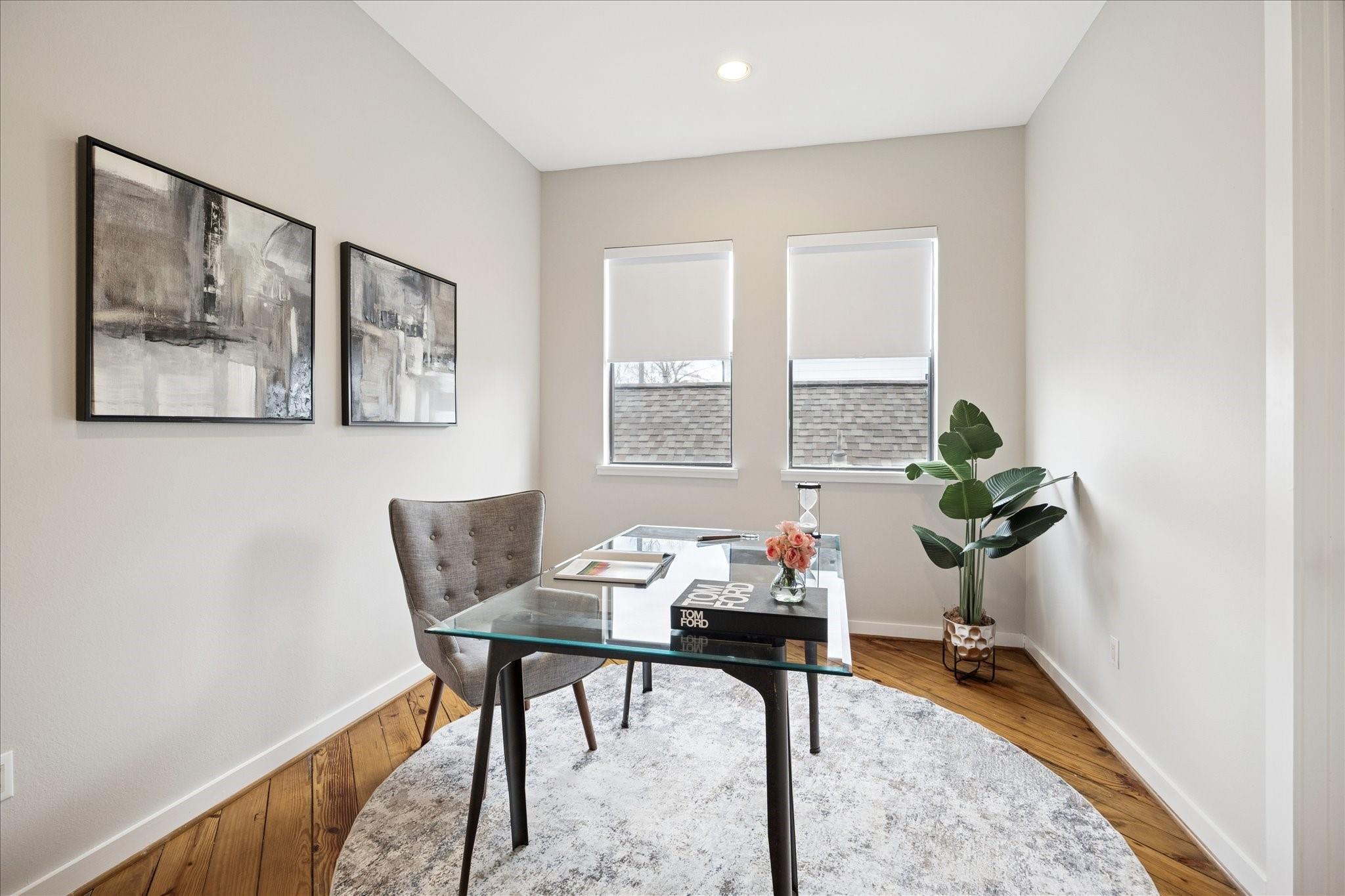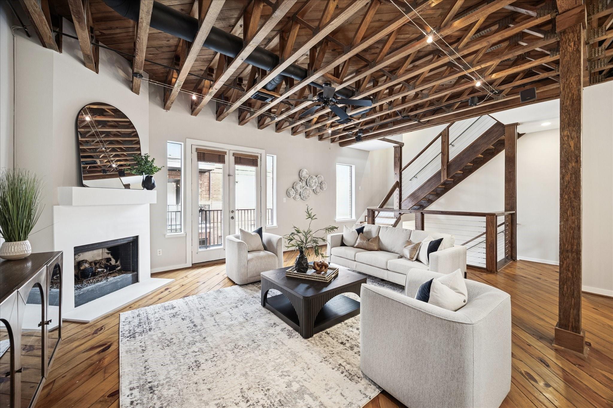 Well maintained property in the exclusive community of Eden Gardens, in prime Rice Military location. These gorgeous brownstone like rowhouses evoke a NYC lifestyle, with close proximity to Memorial Park, Washington Ave eateries, the Galleria and Downtown. Just painted and remodeled with thoughtful upgrades to the kitchen and baths, the home is resplendent with great features such as open truss ceilings, stained concrete and pine wood floors, a gas fireplace, two private balconies and a magnificent roof top terrace offering city wide views. Smartly designed floorplan with large first floor bedroom and ensuite bath, second floor open concept kitchen/dining/living area with conveniently located powder and utility room, and exquisite 3rd floor Primary Suite with an adjacent extra room, that could be utilized as bedroom, office or workout room. There are additional resident parking spaces in front, and property is shaded with mature oak trees. A true gem!