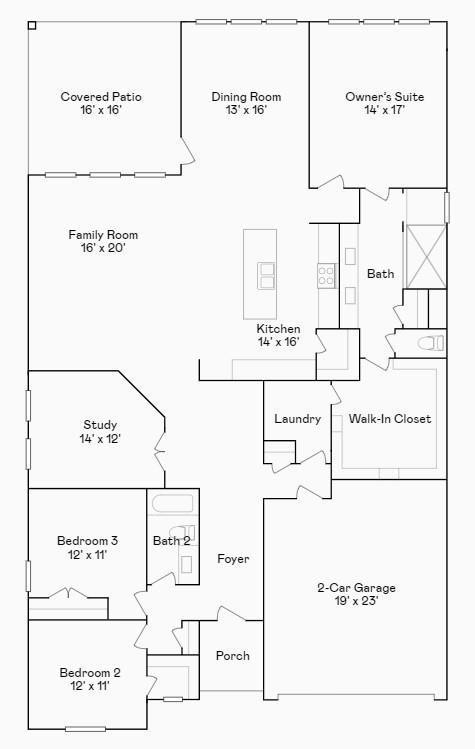 First FloorFamily Room:16x20Dining:13x16Kitchen:14x16Primary Bedroom:14x17Bedroom:12x11Bedroom 2:12x11Home Office/Study:14x12