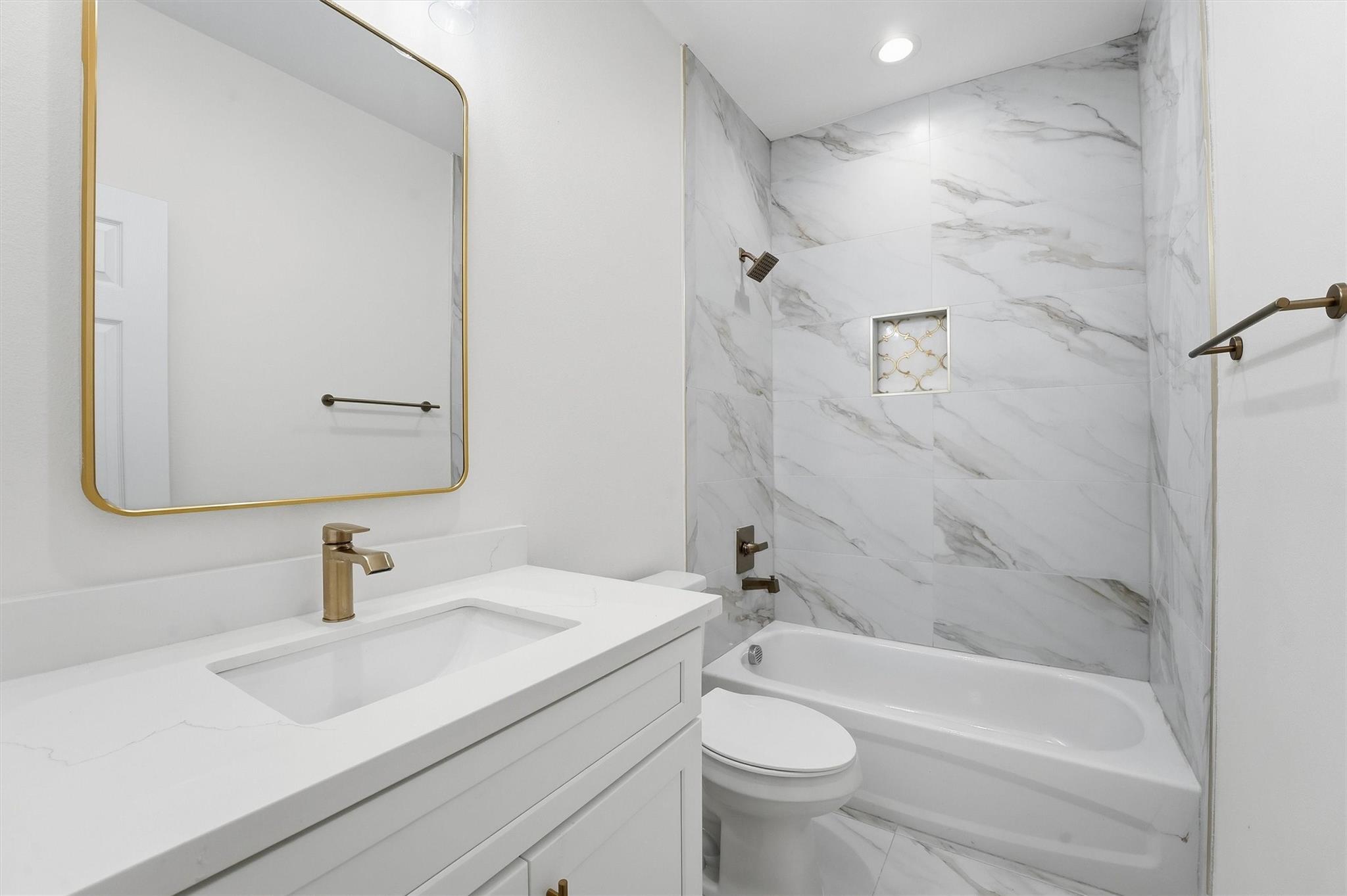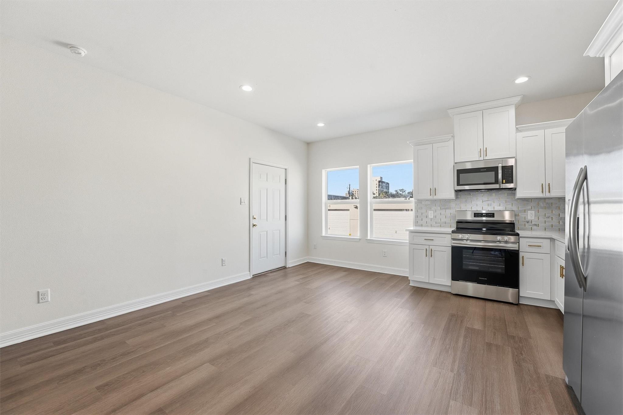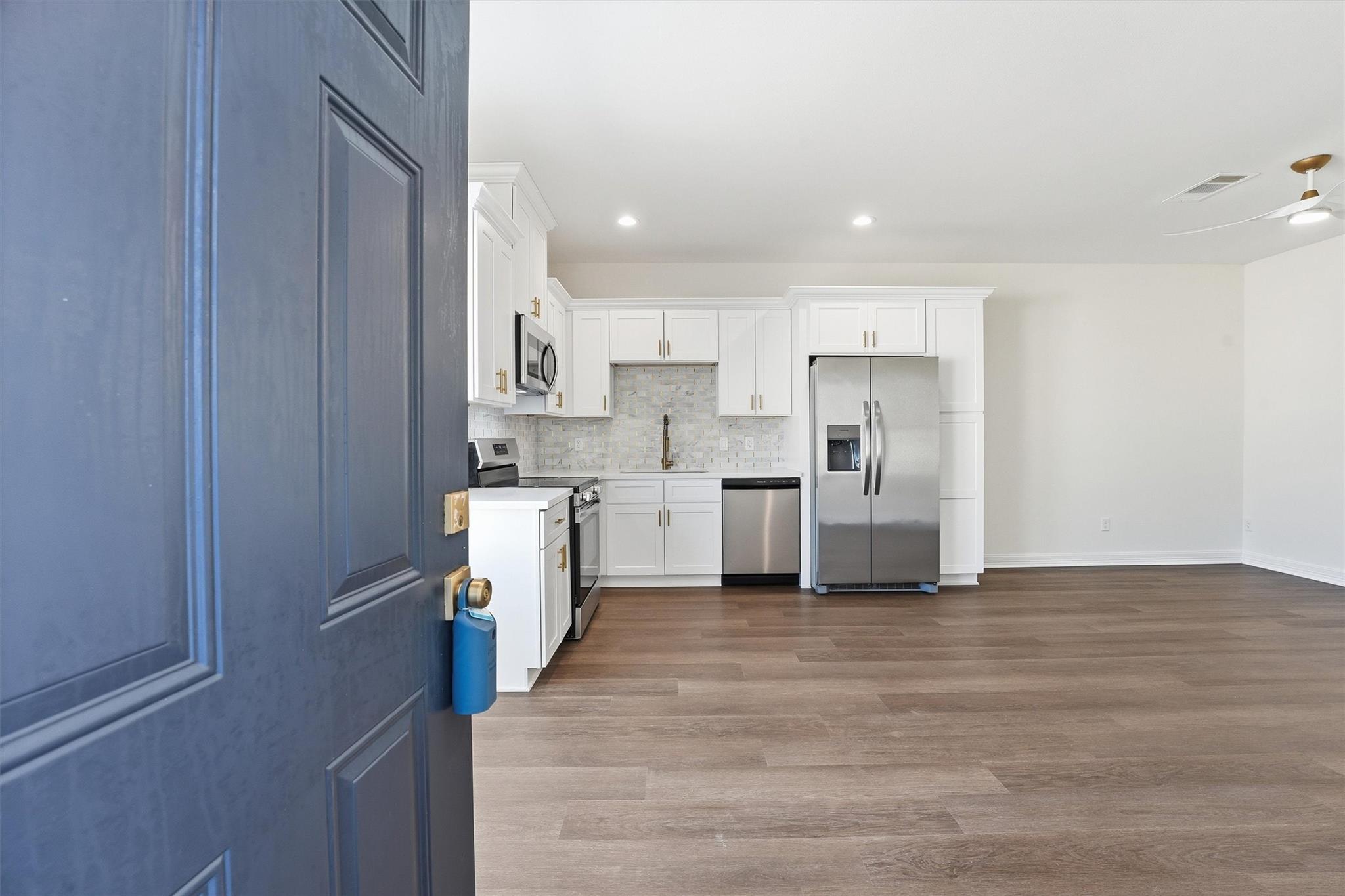 HARD TO FIND BRAND NEW CONSTRUCTION DUPLEX offering an opportunity for owner-occupants or investors. Live in one unit and lease the other or rent both for income. Both identical units feature a modern design with vinyl plank flooring throughout, open-concept living, dining, and kitchen areas, 42" white cabinets, white quartz countertops, stylish tiled backsplash, stainless steel appliances, and contemporary lighting. Each unit includes a half bath downstairs, two spacious bedrooms upstairs, a dedicated washer and dryer area, and a beautifully updated full bathroom. All appliances included, even the washer and dryer. Each unit offers private covered parking for two vehicles or golf cart. Located within walking distance to the Entertainment District and The Strand, with nearby restaurants, shops, and attractions, and just a short ride to the beach, Seawall, and Pleasure Pier. Move-in ready. Unit A is currently Tenant Occupied for immediate rental income. Call for private tour today!