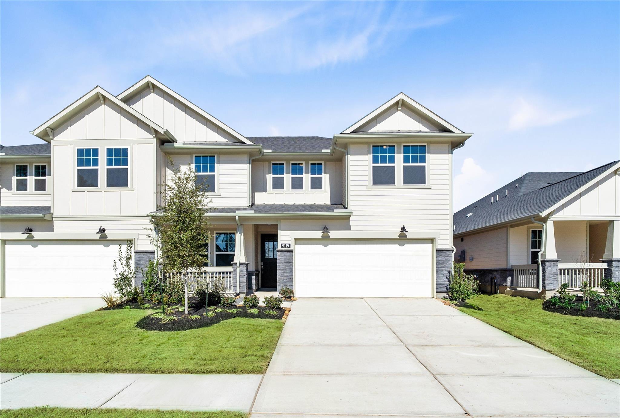 BEAZER HOMES NEW CONSTRUCTION – Welcome to 9119 Petroglyph Point Court, situated in the master-planned community of The Highlands and zoned to New Caney ISD. This 2-story duet home features 4 bedrooms, 2 full baths, 1 half bath, and a 2-car garage. The kitchen features a large island w/added breakfast bar, stylish cabinetry with under cabinet lighting, and walk-in pantry. The Great Room boasts of high ceilings and tall windows. The primary bath features a walk-in shower, soaking bath, and framed mirrors over dual vanity sinks. The primary walk-in-closet has easy access to laundry room. Upstairs, the secondary bedrooms and loft complete the home. Standard features include: extended covered patio with gas stub out, 6" baseboards, Dupure water filtration, full gutters w/downspouts, network ready, full sod w/irrigation, EV charger in garage, and 1 year HVAC maintenance program. Don’t miss this incredible opportunity to make this home yours—schedule your private tour today!