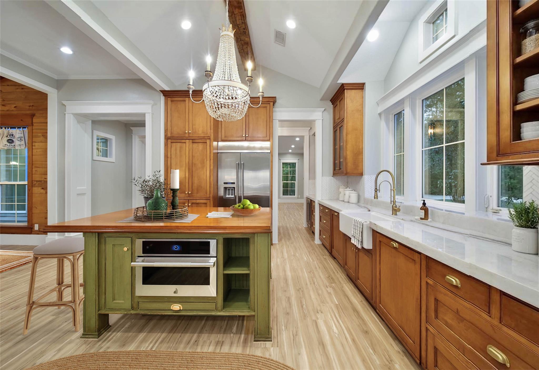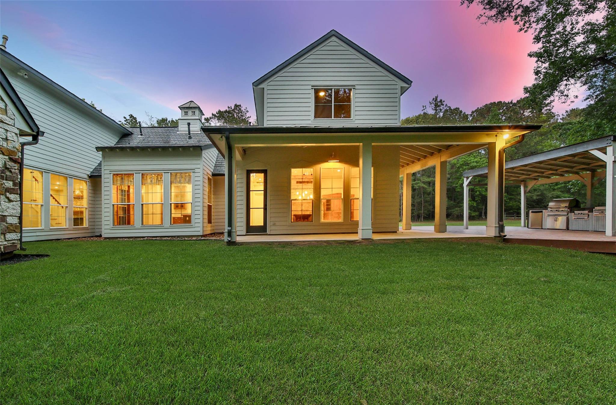 Located in sought-after Sendera Lake Estates, this fully renovated custom home embodies farmhouse luxury on just over 2 private acres with a private entrance. Blending rustic charm with modern elegance, the home features fresh interior and exterior paint, new LVP flooring and carpet, updated trim, designer lighting, and new countertops throughout. The kitchen is a true centerpiece with a stunning 200-year-old beam, plus dual dishwashers and dual washer/dryer connections for ultimate convenience. Enjoy serene privacy, a barn for added versatility, and a hidden upstairs gameroom. A perfect mix of refined farmhouse style and upscale living.