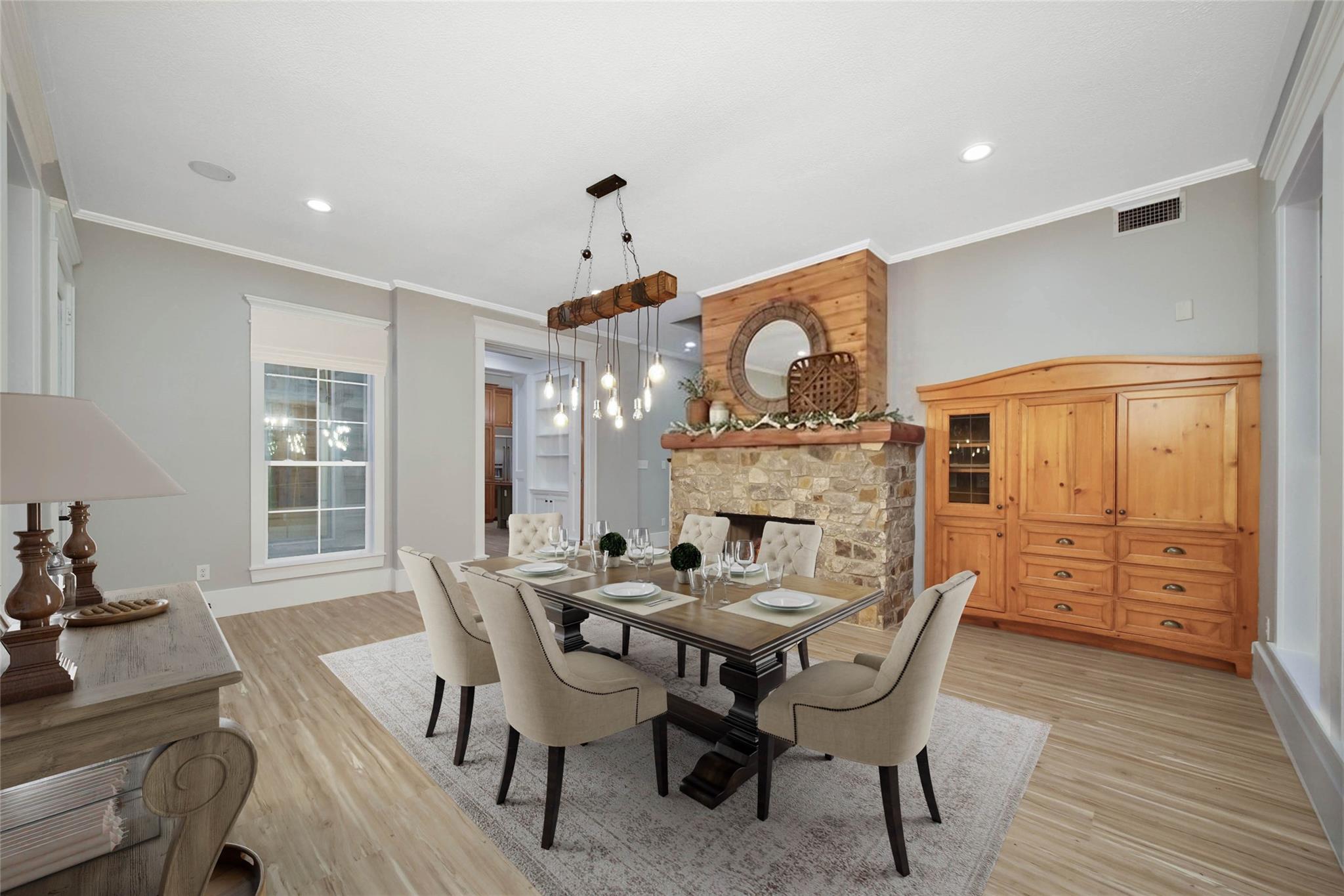 InteriorFireplace:2/Gaslog FireplaceFloors:Carpet,Tile,VinylBathroom Description:Half Bath,Primary Bath: Double Sinks,Primary Bath: Jetted Tub,Primary Bath: Separate ShowerBedroom Desc:En-Suite Bath,Primary Bed - 1st Floor,Walk-In ClosetKitchen Desc:Island w/o Cooktop,Pantry,Pot Filler,Pots/Pans Drawers,Walk-in PantryRoom Description:Breakfast Room,Den,Family Room,Formal Dining,Gameroom Up,Home Office/Study,Living Area - 1st Floor,Utility Room in HouseHeating:Central GasCooling:Central ElectricConnections:Electric Dryer Connections,Gas Dryer Connections,Washer ConnectionsDishwasher:YesDisposal:YesCompactor:NoMicrowave:YesRange:Freestanding Range,Gas Cooktop,Gas RangeOven:Double Oven,Freestanding OvenIce Maker:NoEnergy Feature:Attic Vents,Ceiling Fans,Digital Program ThermostatInterior:2 Staircases,Crown Molding,Dry Bar,Fire/Smoke Alarm,Formal Entry/Foyer,High Ceiling,Refrigerator Included,Vaulted Ceiling,Wine/Beverage Fridge