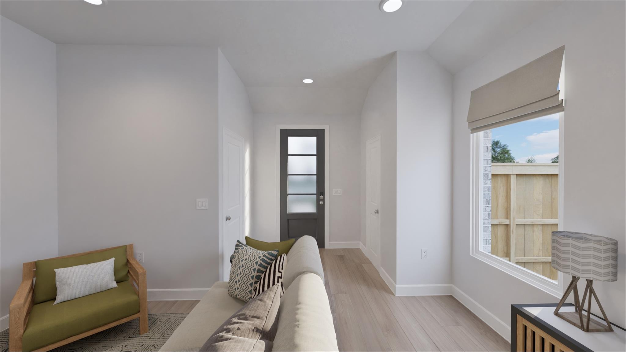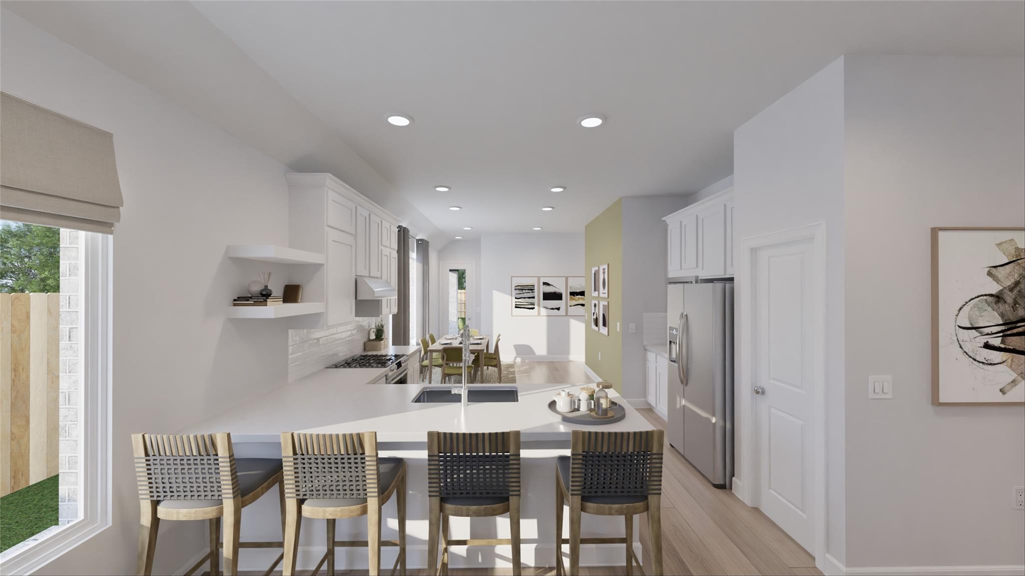 The Addison Floor Plan - This new single-level home features a low-maintenance and modern design. An open-concept floorplan combines the kitchen, living and dining areas, with a nearby covered patio ready for outdoor entertainment and leisure. Two secondary bedrooms are tucked away to the side of the home, and the luxe owner’s suite is nestled into a private rear corner, complete with a spa-inspired bathroom and walk-in closet. The completion date, prices and features may vary and are subject to change. Please verify with Lennar directly. Photos are for illustrative purposes only.