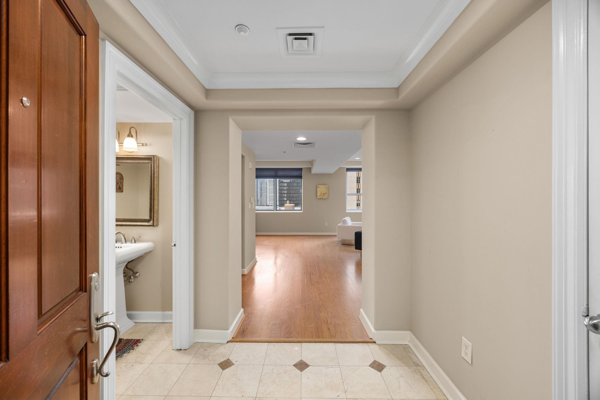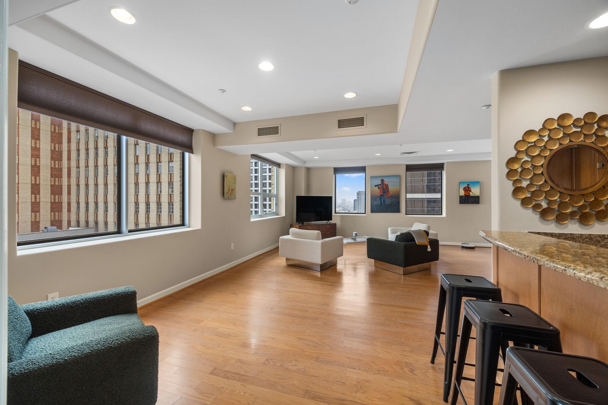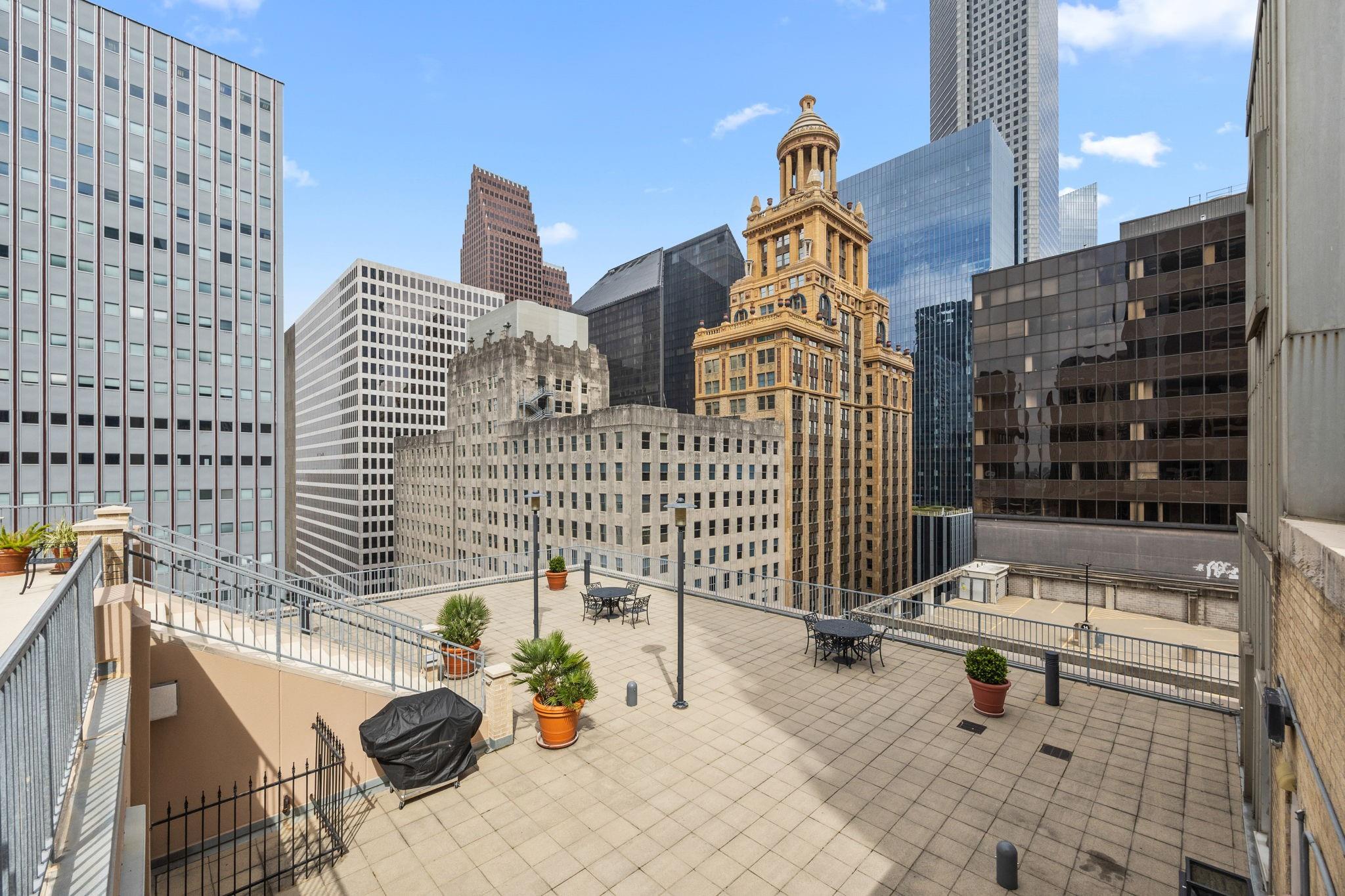 Luxury Hi-Rise living at its finest! Welcome home to this spacious 1 BR, 1.5 bath, light filled corner unit condo in the prestigious Commerce Towers! From the moment you enter the secured accessed building, you are greeted by friendly staff to wish you a good day! The layout of this unit allows for impeccable entertaining possibilities, with marvelous views of downtown historic buildings. Located on the 15th floor, you are just a hallway walk to the impressive community pool/deck/putting green amenities! Unit offers pristine hardwoods throughout, large walk-in closet, granite countertops, primary BR seating area, custom motorized window treatments & a marbled welcoming entry. Just a few of the features that make this one to see! If you're looking for the quintessential Houston downtown living experience, look no further! More to love: Valet parking, fitness center, 2 assigned parking spaces, conference/party space w/kitchen. Don't delay, book your appt to view today!