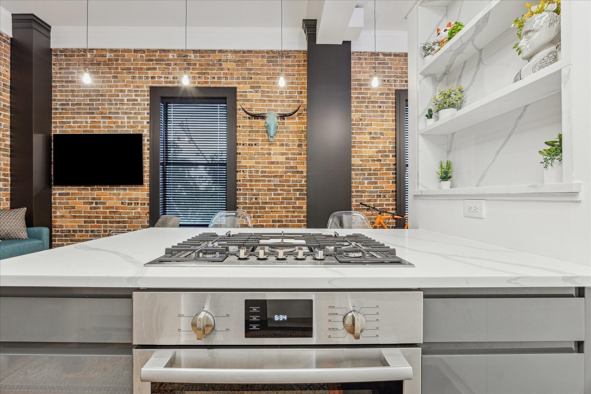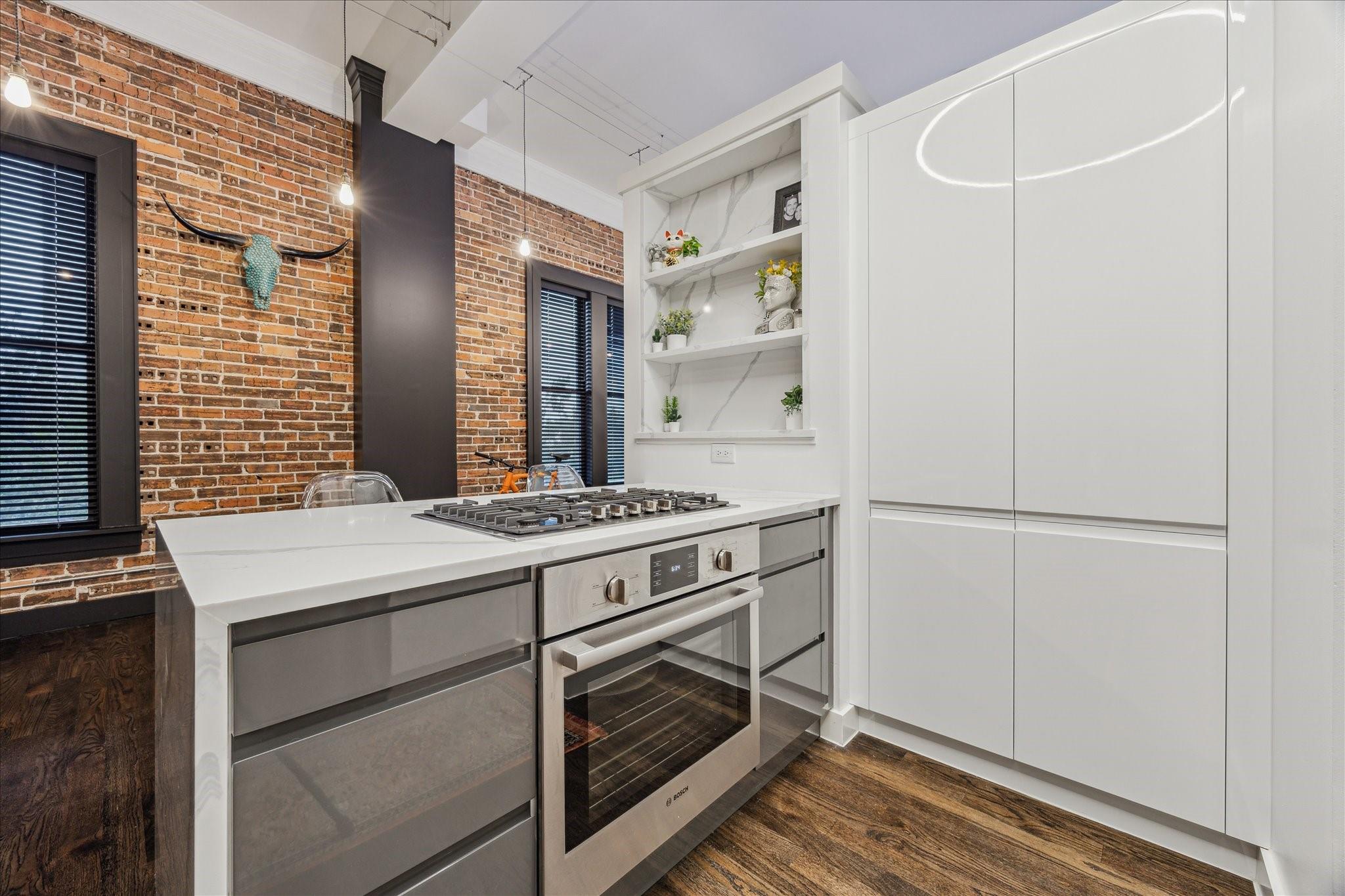 This pristine 1 bed loft has been fully renovated! Spacious with 14ft ceilings, custom hardwood flooring with exposed brick. Kitchen has been redesigned with high-end Bosch appliances. The bdrm features his & hers closet. 1 garage space & 1 extra available for purchase. Bldg has 24/7 concierge, rooftop deck with splash pool, and gym. Bayou Lofts is a historic residential building situated in the heart of downtown and within walking distance of a variety of cultural attractions. The building was originally constructed in 1910 as the Southern Pacific Railroad headquarters, and was later converted into residential apartments. The building's historic character has been preserved, with many of the original features and architectural details still intact. The location offers easy access to dining and entertainment options, as well as nearby parks and trails. It is a great choice for those looking for a unique living experience in the heart of Houston's vibrant downtown.
