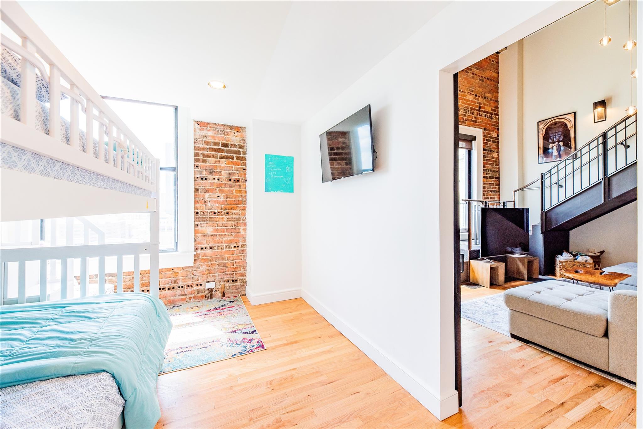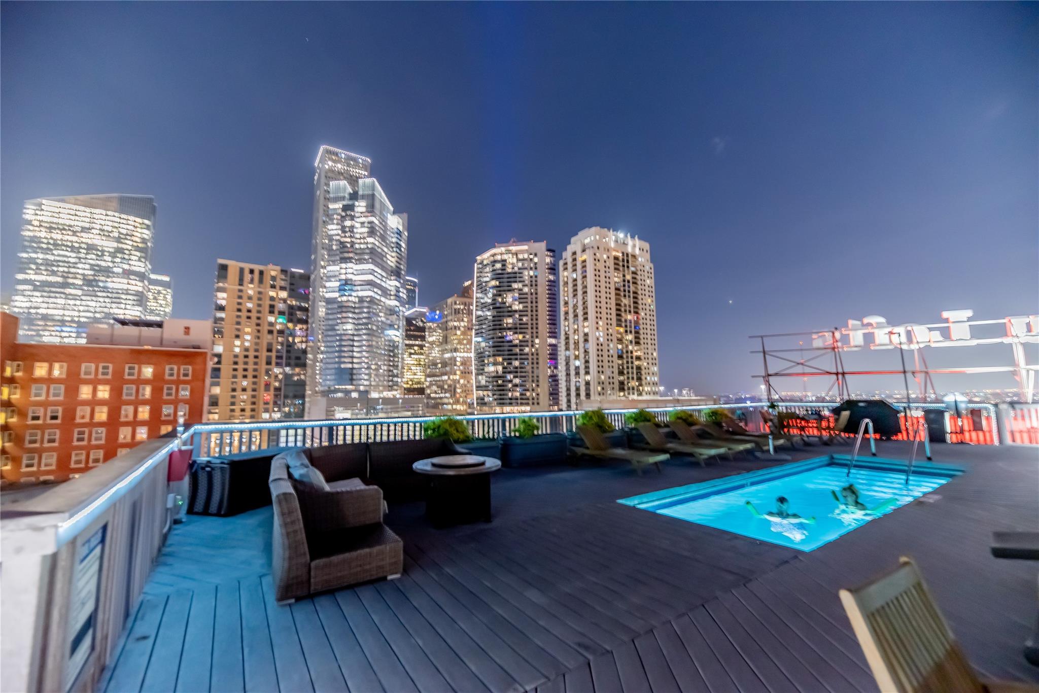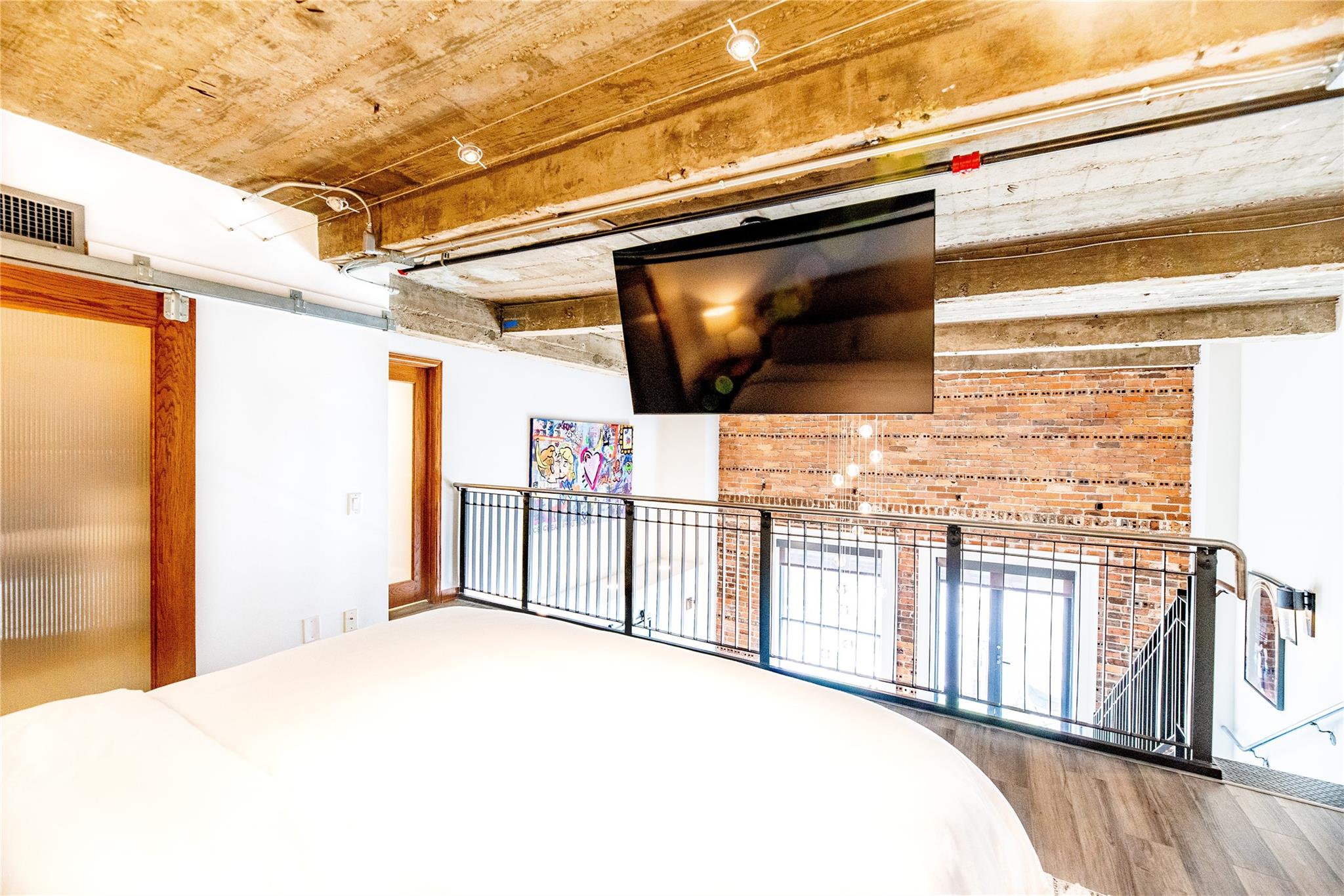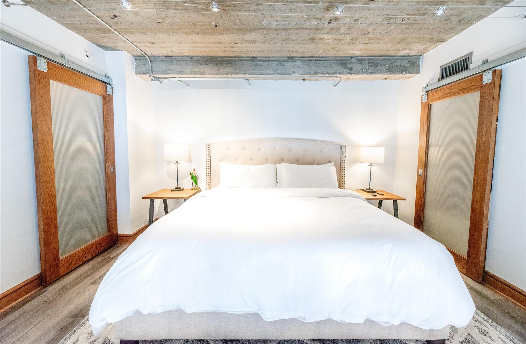 A must see contemporary two level Penthouse at the Bayou Lofts in the heart of downtown. This spacious two story home has open cement high ceilings, exposed pipe and brick with amazing finishes throughout. All appliances included- Thermador gas oven, dishwasher, fridge, microwave, washer/dryer and wine chiller. Upstairs bedroom features two closets and added large walk-in closet also included is a custom drop-down motorized 75" t.v. Rooftop splash pool with gas grills, first floor gym. Loft includes two deeded parking spaces and basement storage. Building has 24/7 concierge, close to The Post, Toyota Center, Discovery Green, Daikin Park, Theaters and the Metro rail.