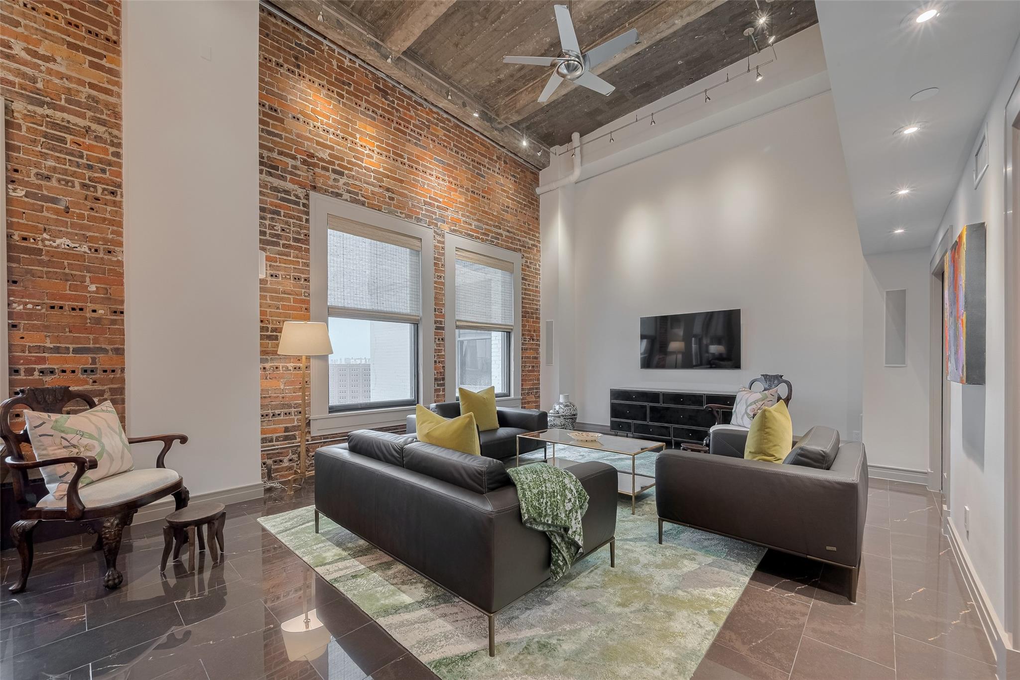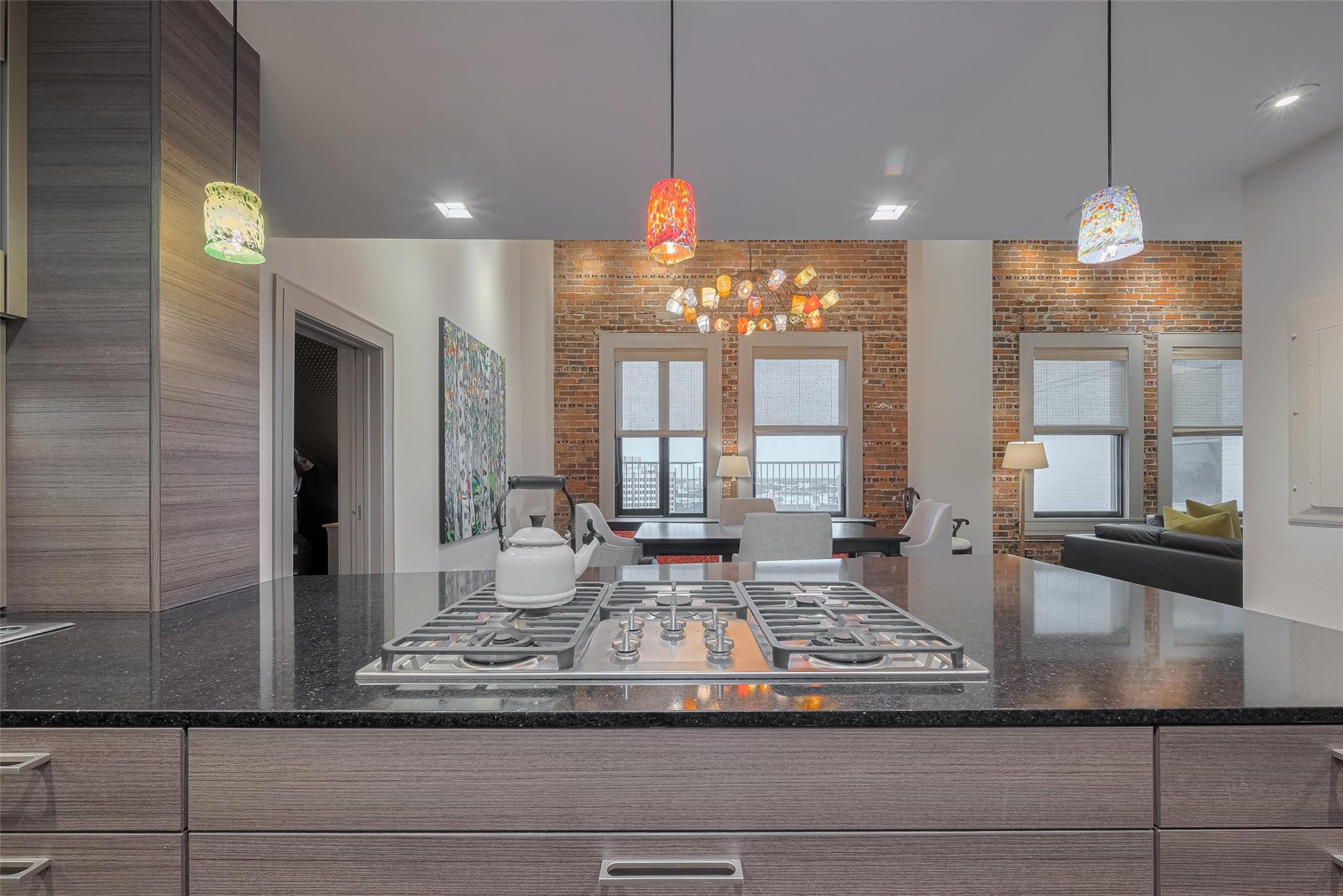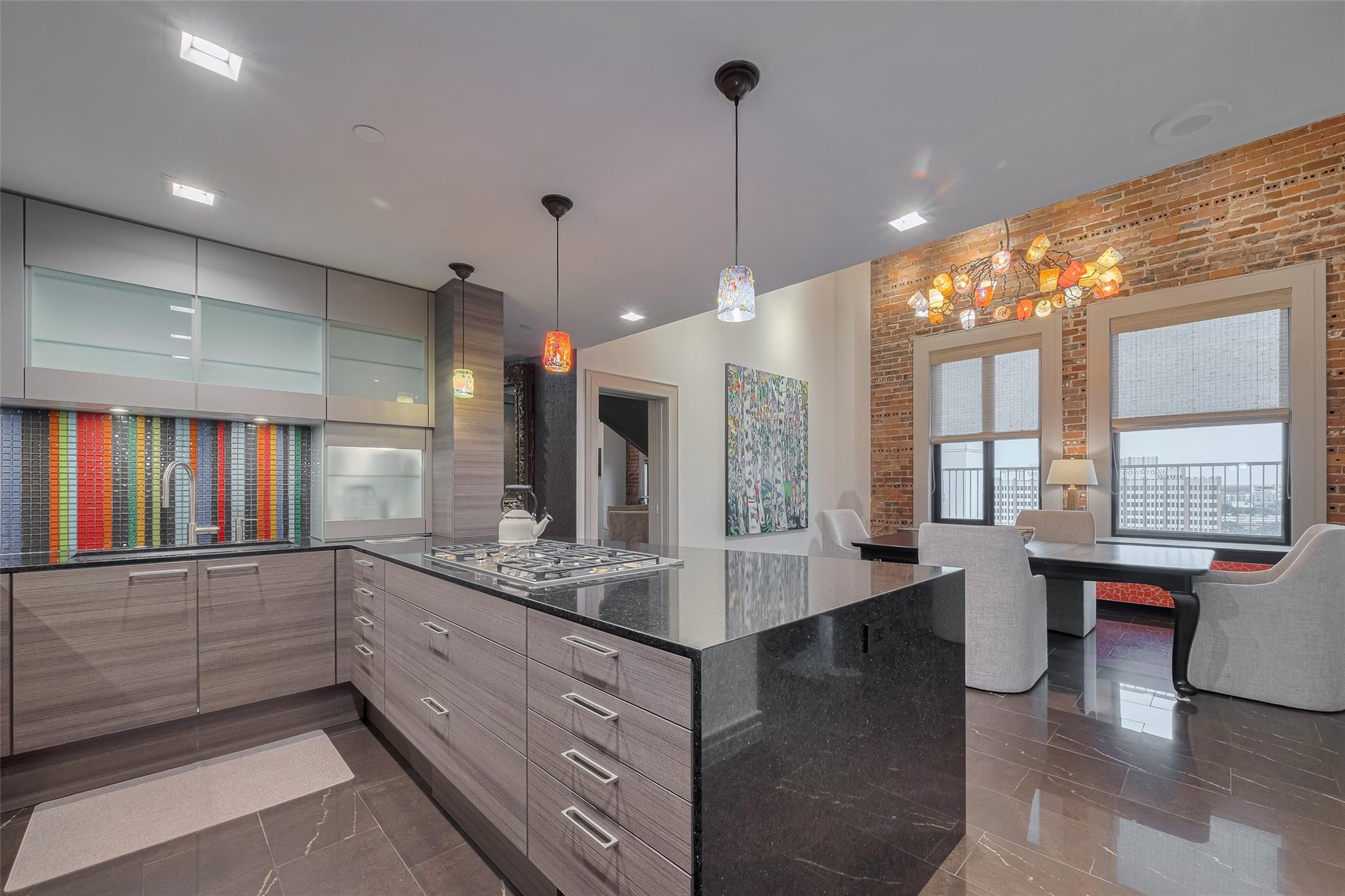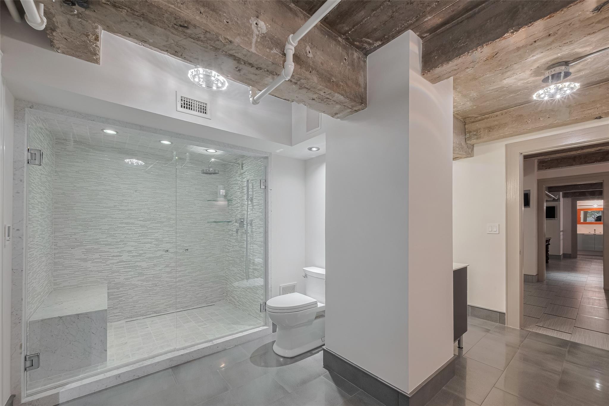 Experience elevated urban living in this fully renovated penthouse loft in the heart of Downtown. This two-story residence offers a spacious open floorplan with high-end finishes throughout. The chef's kitchen features Poggenpohl cabinetry, Miele appliances (refrigerator, coffee center, microwave/oven combo), and a 144 bottle dual zone Sub-Zero wine fridge. The primary bedroom is on the main level, with additional bedroom upstairs overlooking the living area. One upstairs bathroom includes heated floors. Enjoy three Samsung QLED TV's, enhanced WIFI with boosters, and smart features throughout. Two private north-facing balconies provide impressive city views. Bayou Lofts residents enjoy access to a rooftop deck with cocktail pool, fitness center, and concierge. This unit includes four assigned parking spaces and two storage cages. All info per seller