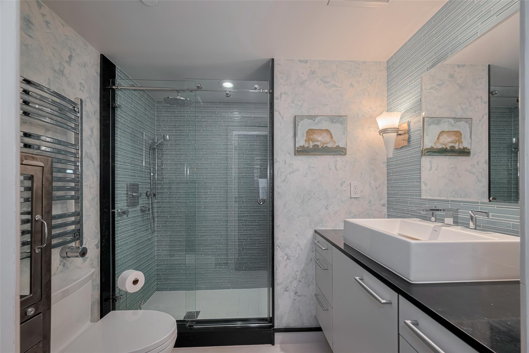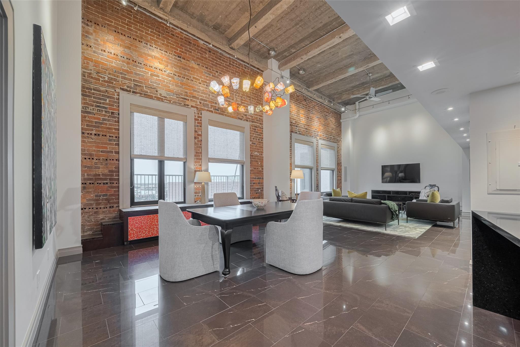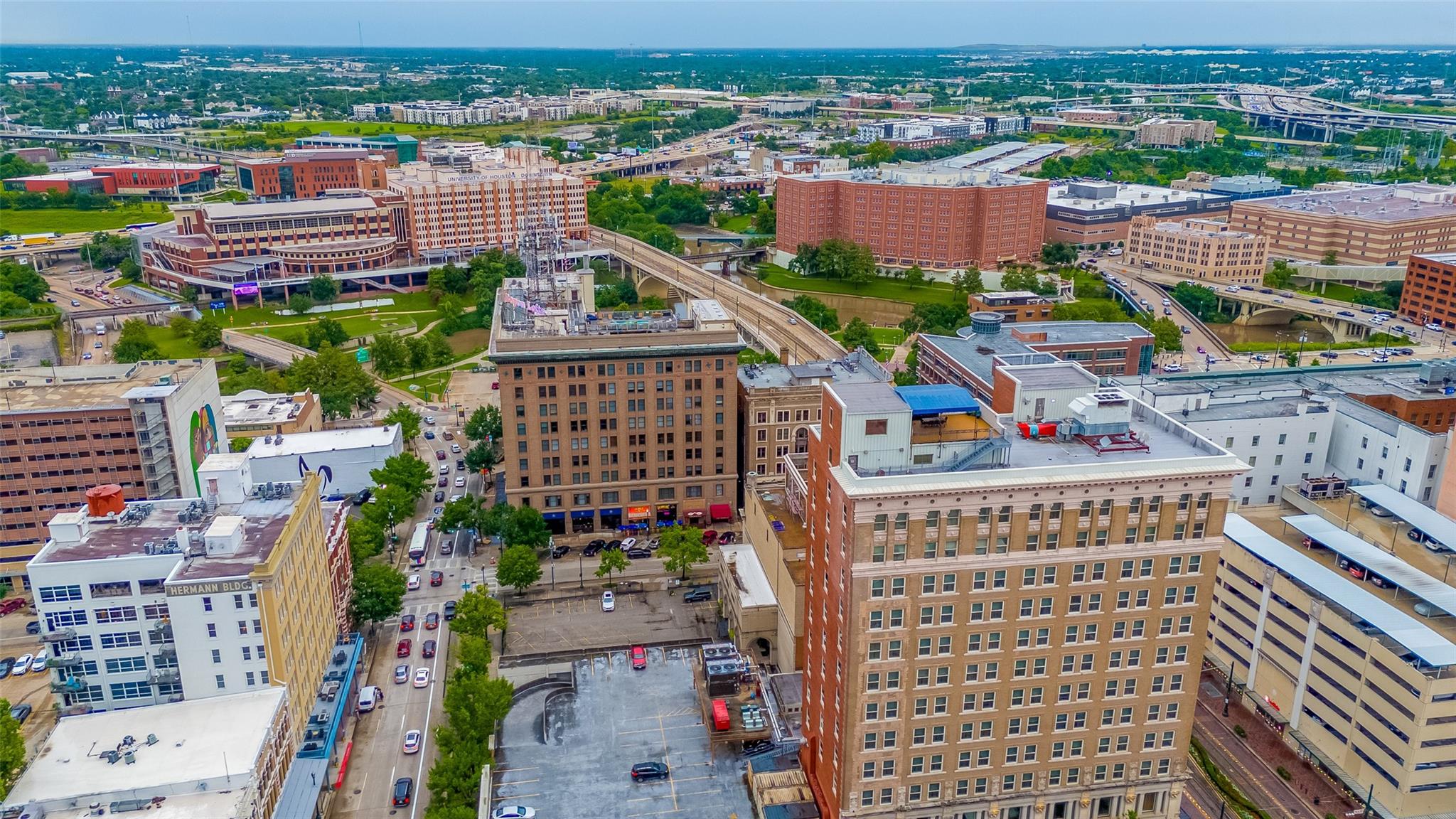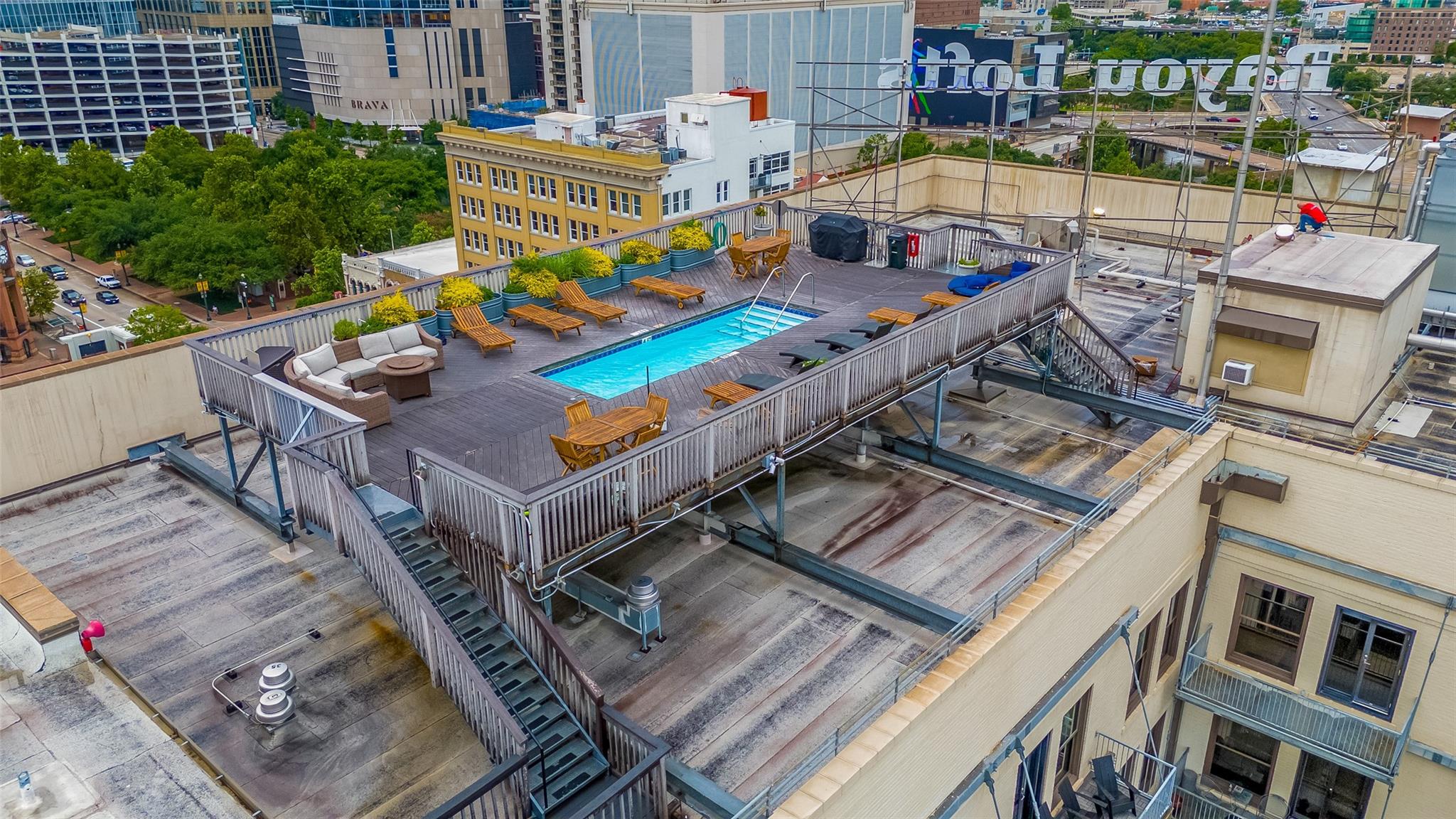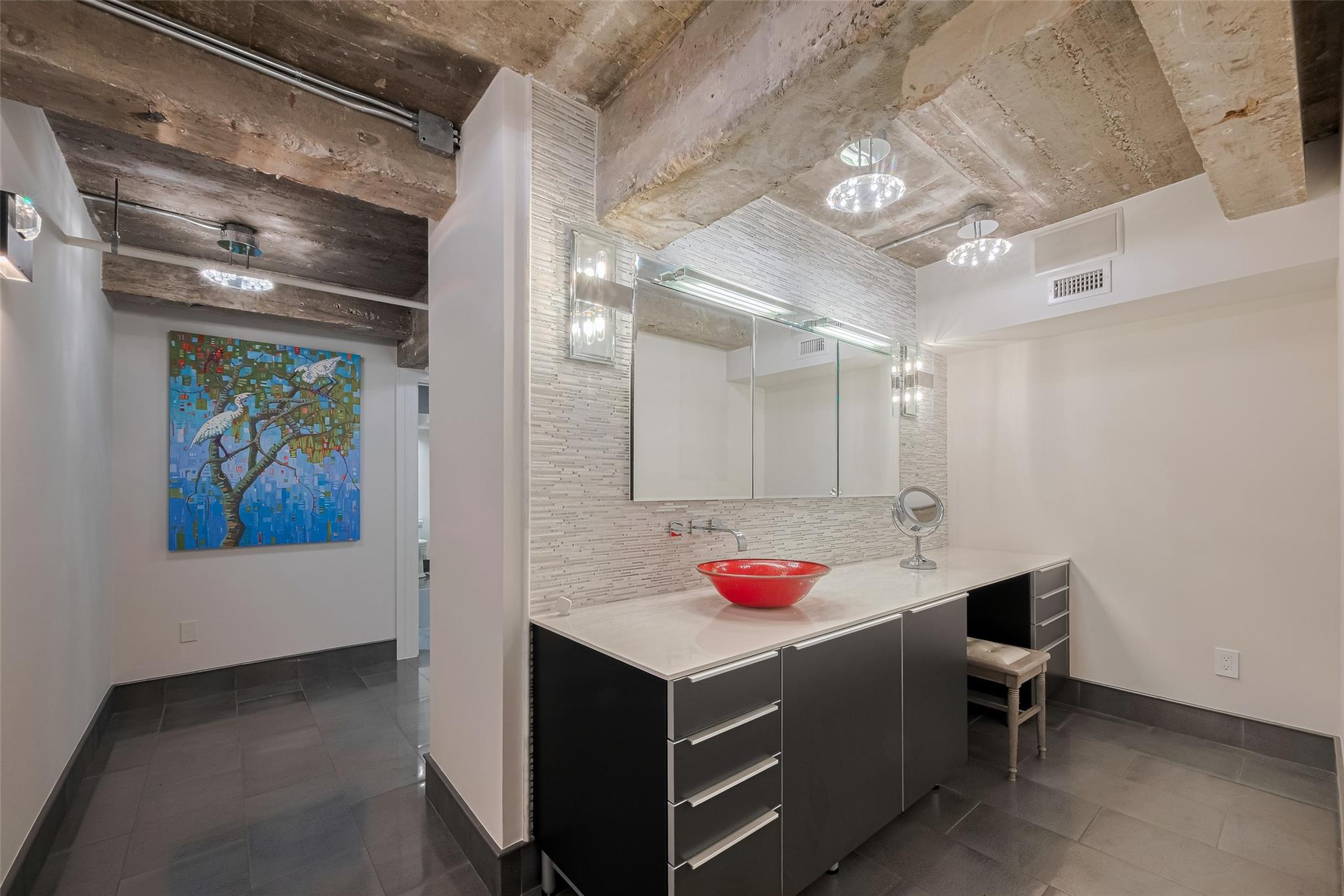 Experience elevated urban living in this fully renovated penthouse loft in the heart of Downtown. This two-story residence offers a spacious open floorplan with high-end finishes throughout. The chef's kitchen features Poggenpohl cabinetry, Miele appliances (refrigerator, coffee center, microwave/oven combo), and a 144 bottle dual zone Sub-Zero wine fridge. The primary bedroom is on the main level, with additional bedroom upstairs overlooking the living area. One upstairs bathroom includes heated floors. Enjoy three Samsung QLED TV's, enhanced WIFI with boosters, and smart features throughout. Two private north-facing balconies provide impressive city views. Bayou Lofts residents enjoy access to a rooftop deck with cocktail pool, fitness center, and concierge. This unit includes four assigned parking spaces and two storage cages. All info per seller