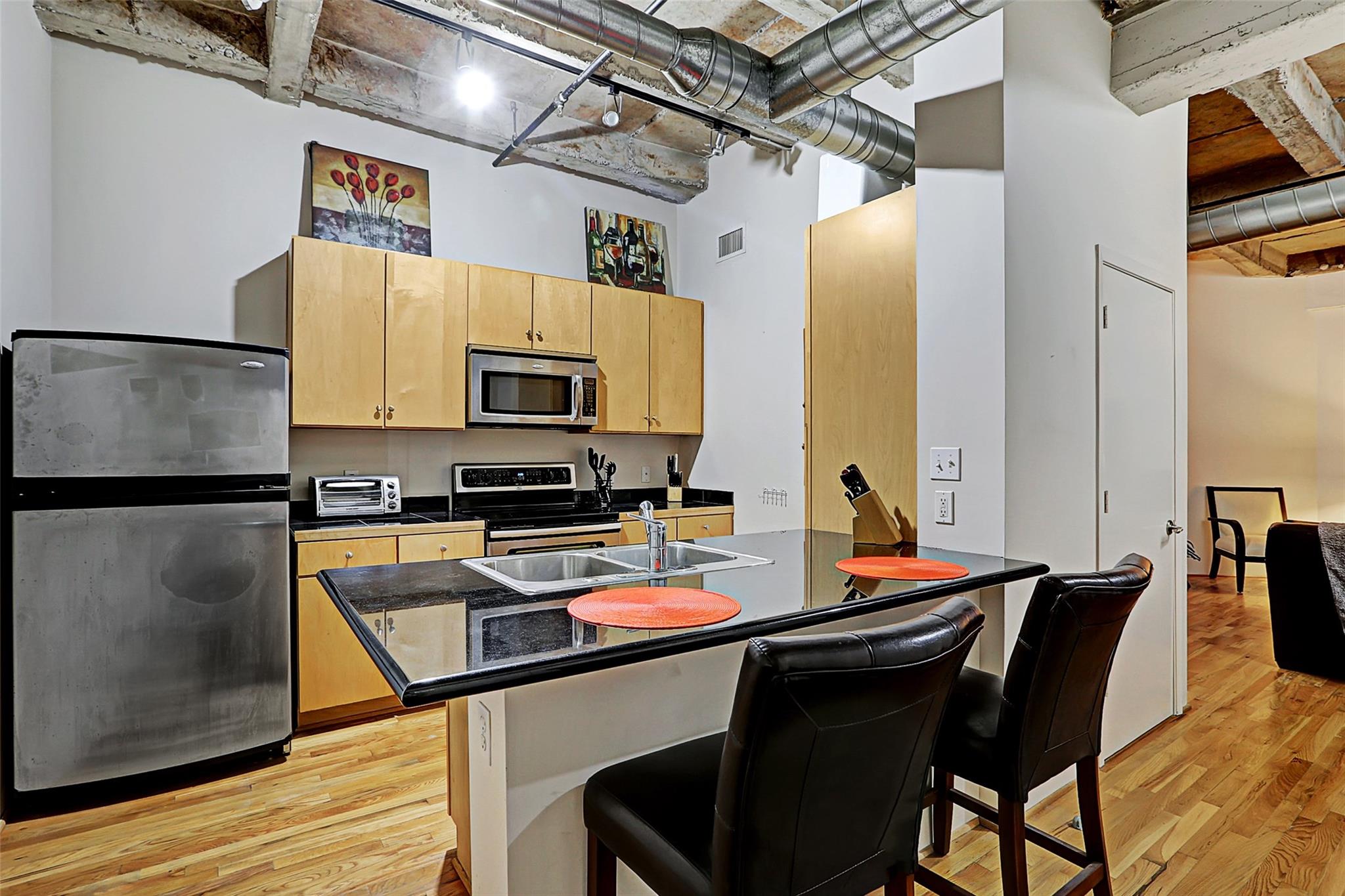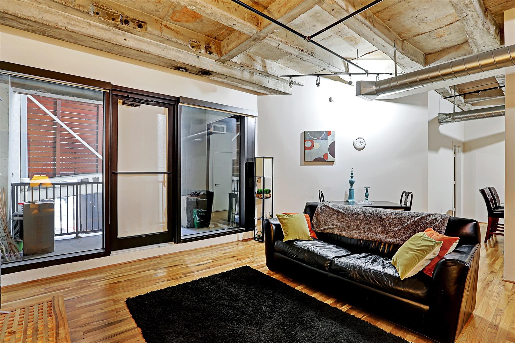 Welcome to this spacious 1/1 loft in the heart of Downtown Houston! Featuring a private balcony, large walk-in closet, and in-unit washer and dryer. Furniture can be included in the sale. Kirby Lofts is conveniently located on the MetroRail, near attractions like Theater District, Discovery Green, and Toyota Center. Access to the 7-mile tunnel system with 200+ eateries, medical, beauty, and retail. HOA fees cover all utilities, including electricity, cable, and fiber optic wifi. Appliances included. Building amenities include an onsite property manager, secured access, and a gym. Experience urban living at its finest!