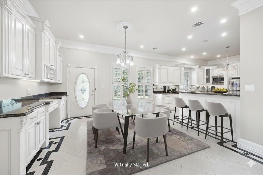 Grand 6 Bedroom home with a two bedroom Guest House on .81 acre lot. This home is ready for your personal touches. Talk to agent about options. An elegant marble entry with soaring two-story ceilings and wrought iron staircase. Formal dining and office flank the grand foyer. Primary ensuite bedroom is down. Chef’s kitchen offers gas cooktop island, granite counters, breakfast bar, and Cherry cabinets, opens to living and breakfast rooms. Murano chandeliers, one mechanically lowers for cleaning, highlight the living spaces with views of the recent pool, spa, Summer kitchen and convenient pool bath. Expansive mudroom with custom cabinetry, half bath, spacious utility room with washer/dryer. Upstairs, 5 bedrooms, two and a half baths, a game room, and a dedicated kids’ study area. Guest cottage, built in 2024, includes two bedrooms, one bath, living and breakfast room, full kitchen, washer/dryer and a private driveway and entrance. Three gated entrances and a large parking pad for que