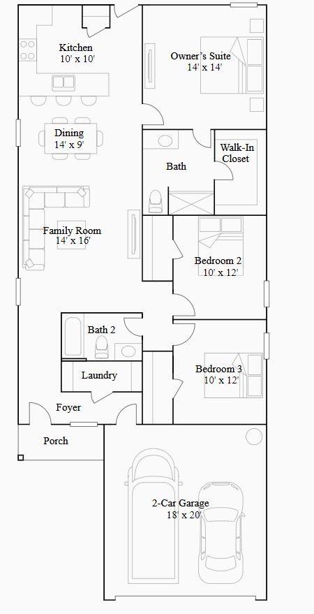 First FloorFamily Room:14x16Dining:14x9Kitchen:10x10Primary Bedroom:14x14Bedroom:10x12Bedroom 2:10x12