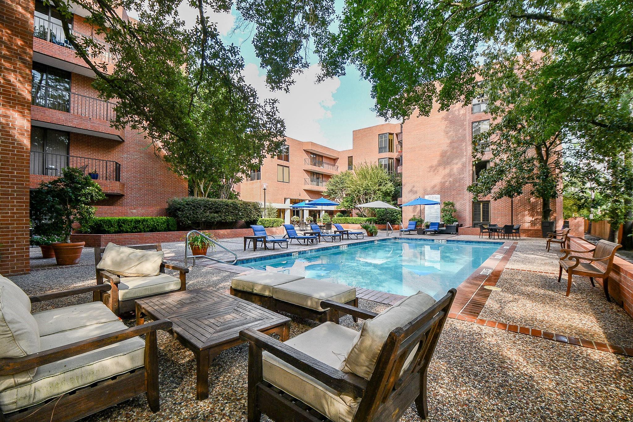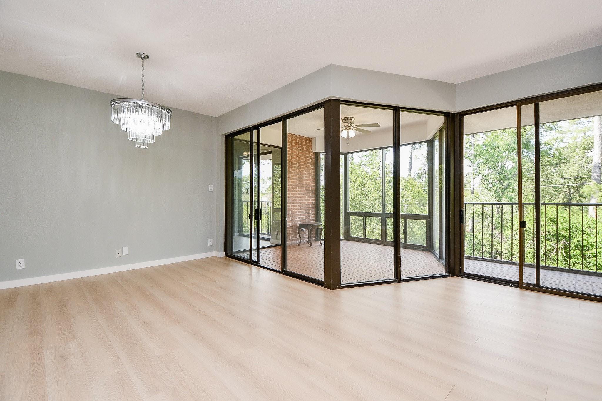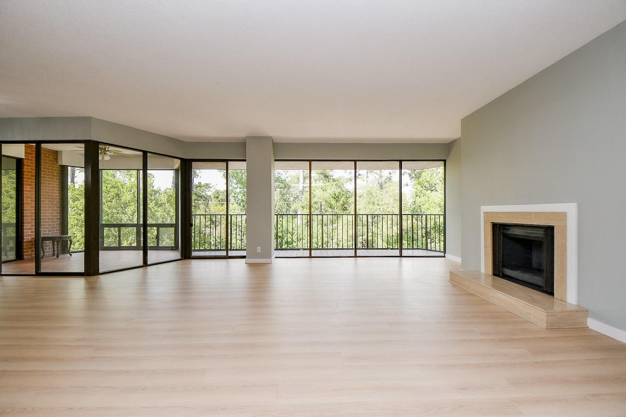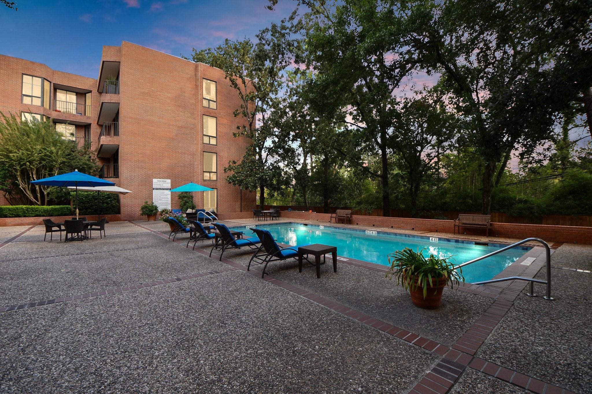 Welcome to The Memorial! beautifully renovated third floor unit located in the heart of Memorial in the Spring Branch Independent School District. Walls of glass allow a slew of natural light, and high ceilings enhance the spacious, open floorplan. 3/2 beds & bath. The kitchen has a breakfast area and stainless appliances, plus there is a laundry closet with full sized washer and dryer. The combined living / dining rooms have a balcony that runs the full length of the room, and there is a fireplace. On one side, the primary bedroom also has access to the balcony, and there is a beautifully updated bath with double sinks, a separate wet area, and two separate walk-in closets with closet systems. The split bedroom floorplan offers a private secondary bedroom with an updated adjacent bath. The Memorial is designed around beautifully landscaped atriums with lush plantings, and there is building security with 24/7 concierge.