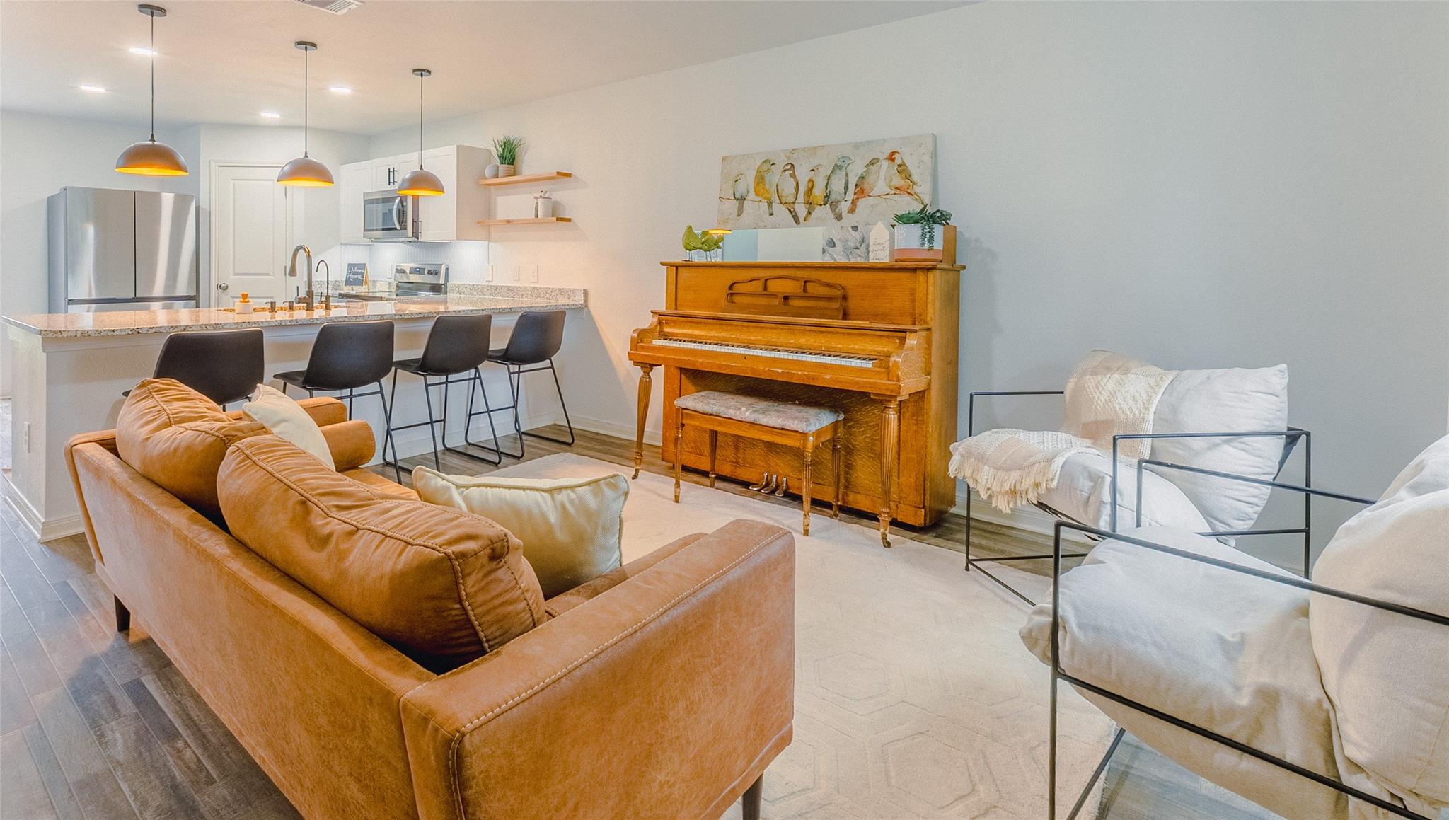 InteriorFloors:Carpet,VinylCountertop:GraniteBathroom Description:Full Secondary Bathroom Down,Primary Bath: Double Sinks,Primary Bath: Tub/Shower Combo,Secondary Bath(s): Tub/Shower ComboBedroom Desc:1 Bedroom Down - Not Primary BR,En-Suite Bath,Primary Bed - 2nd Floor,Sitting Area,Walk-In ClosetKitchen Desc:Breakfast Bar,Kitchen open to Family Room,Pantry,Reverse Osmosis,Under Cabinet Lighting,Walk-in PantryRoom Description:1 Living Area,Family Room,Gameroom Up,Home Office/Study,Kitchen/Dining Combo,Living Area - 1st Floor,Living Area - 2nd Floor,Living/Dining Combo,Loft,Utility Room in HouseHeating:Central Electric,Heat PumpCooling:Central ElectricConnections:Electric Dryer Connections,Washer ConnectionsDishwasher:YesDisposal:YesCompactor:NoMicrowave:YesOven:Electric OvenIce Maker:NoEnergy Feature:Ceiling FansInterior:Fire/Smoke Alarm,Refrigerator Included,Window Coverings