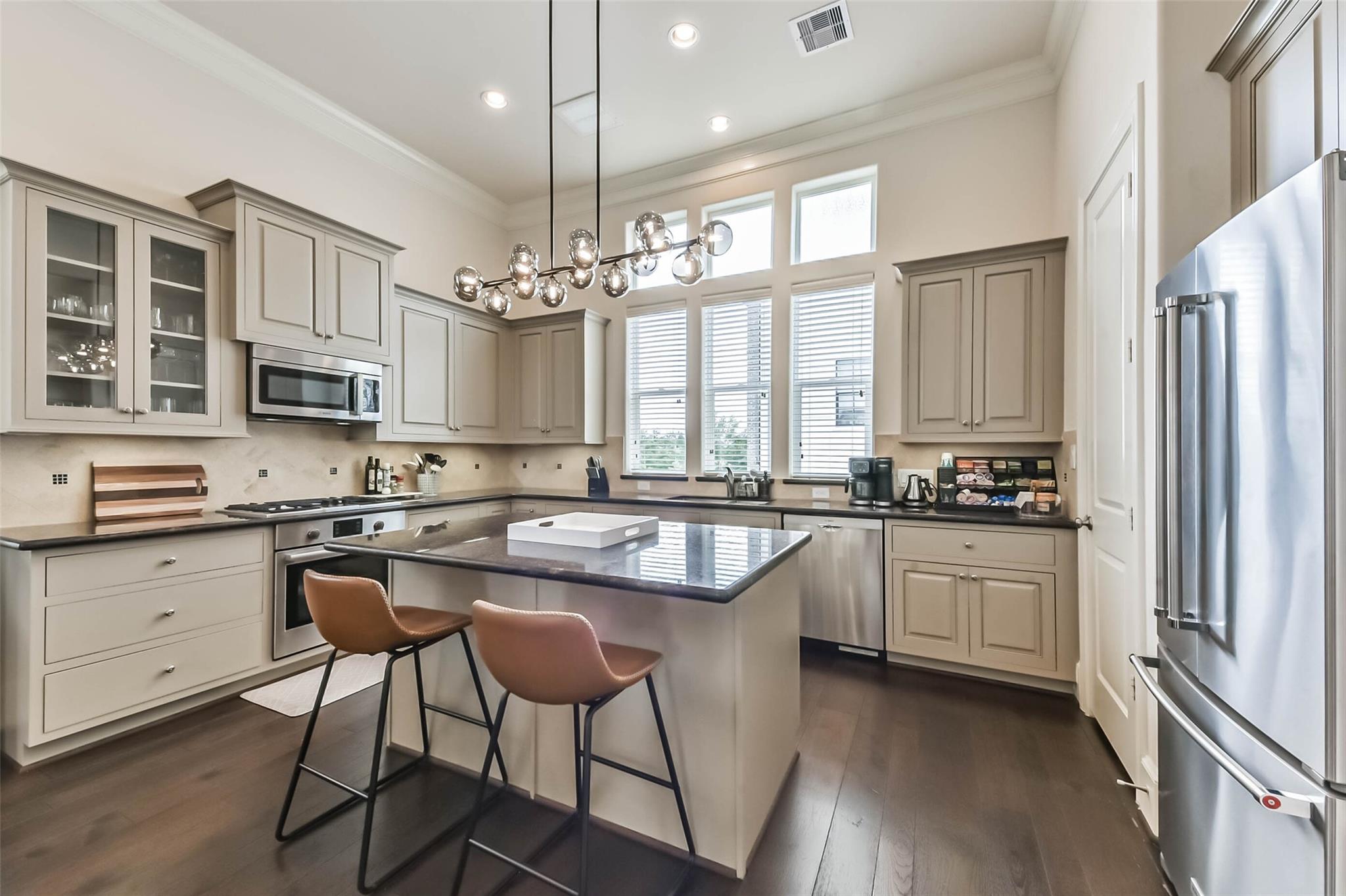 InteriorFireplace:1/Gaslog FireplaceFloors:Carpet,Tile,WoodBathroom Description:Full Secondary Bathroom Down,Half Bath,Primary Bath: Double Sinks,Primary Bath: Separate Shower,Primary Bath: Soaking Tub,Secondary Bath(s): Tub/Shower ComboBedroom Desc:1 Bedroom Down - Not Primary BR,En-Suite Bath,Primary Bed - 3rd Floor,Walk-In ClosetKitchen Desc:Breakfast Bar,Island w/o Cooktop,Kitchen open to Family Room,Pantry,Under Cabinet LightingRoom Description:1 Living Area,Formal Dining,Formal Living,Living Area - 2nd Floor,Living/Dining Combo,Utility Room in HouseHeating:Central GasCooling:Central ElectricDishwasher:YesDisposal:YesMicrowave:YesRange:Gas CooktopOven:Electric Oven,Single OvenAppliances:Dryer Included,Electric Dryer Connection,Full Size,Refrigerator,Washer IncludedEnergy Feature:Ceiling Fans,Digital Program Thermostat,Insulated/Low-E windows,Tankless/On-Demand H2O HeaterInterior:Balcony,Central Laundry,Crown Molding,Formal Entry/Foyer,High Ceiling,Refrigerator Included,Window Coverings