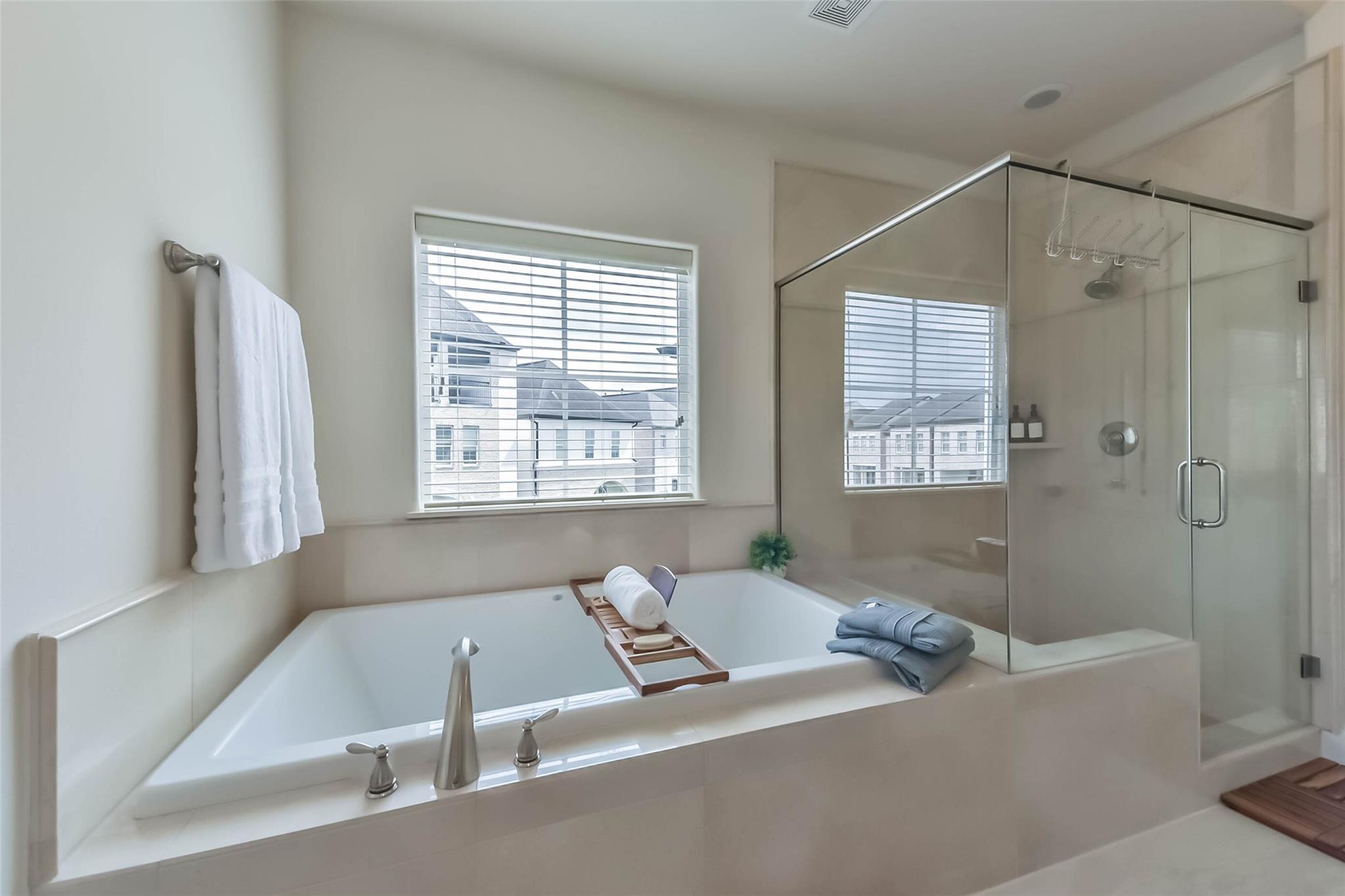 Charming townhouse on a corner lot filled with natural light. This private complex boasts a serene pond and refreshing pool. The 3 bed, 3½ bath home features an open layout with a kitchen seamlessly flowing into the dining and living areas. Enjoy a spacious kitchen island with a large island. Plenty of storage space and a pantry. Experience the perfect blend of old-world charm and modern amenities. High ceilings add to the airy feel of the home. Refrigerator, washer, and dryer included. Convenient location near guest parking and green areas for leisurely strolls. Close to Medical Center, Downtown, and The Galleria. Easy freeway access.