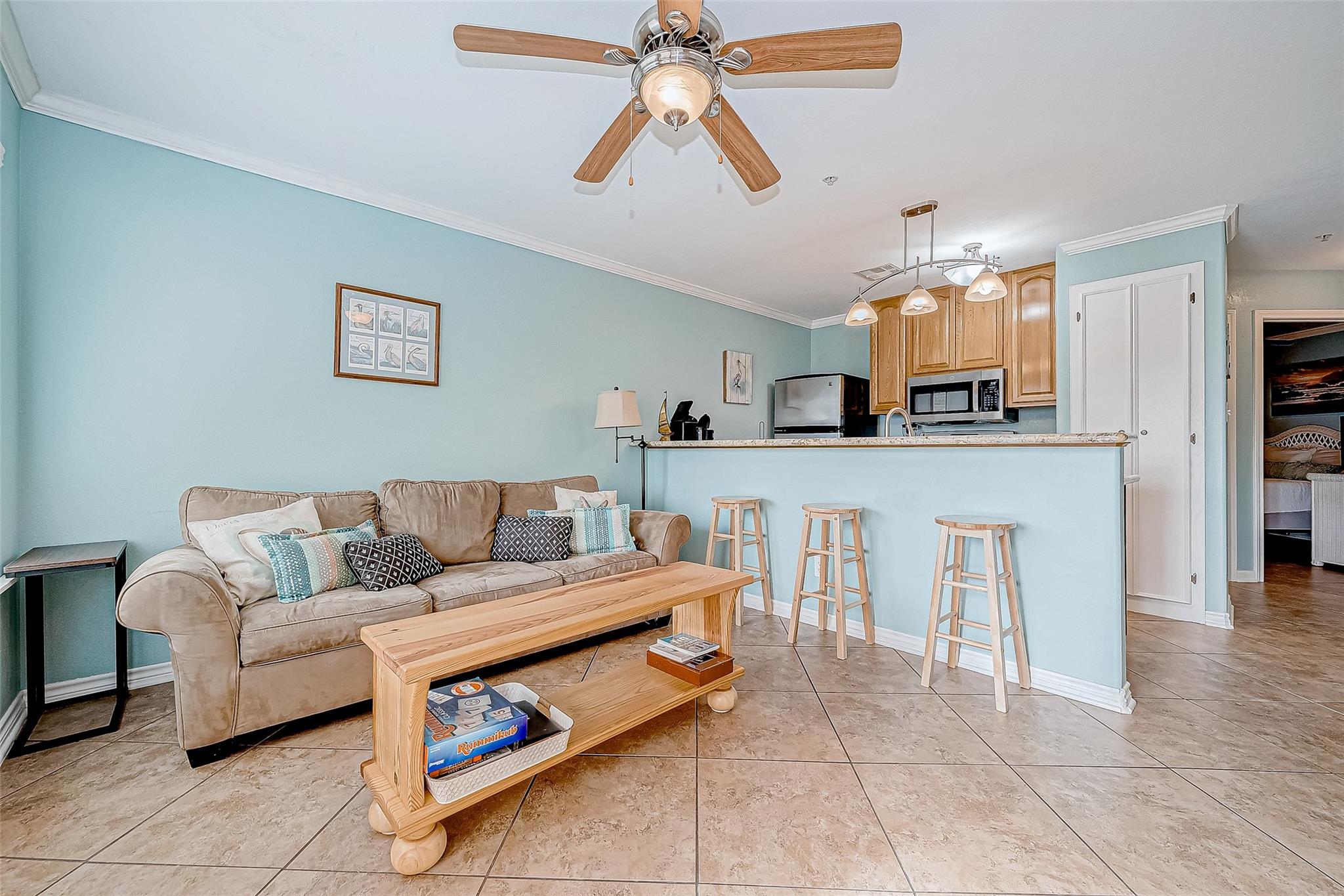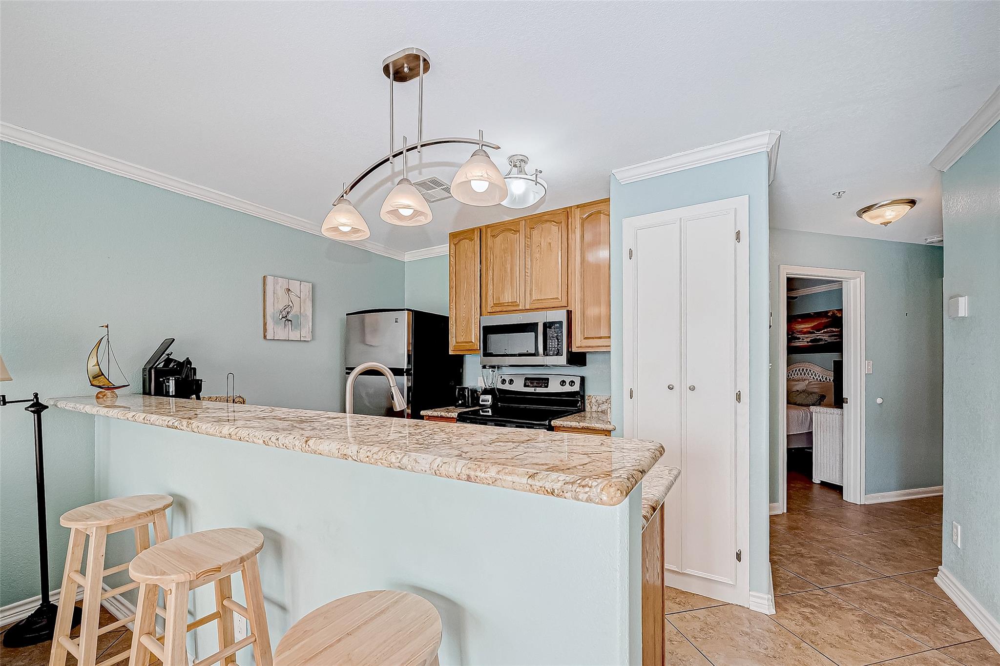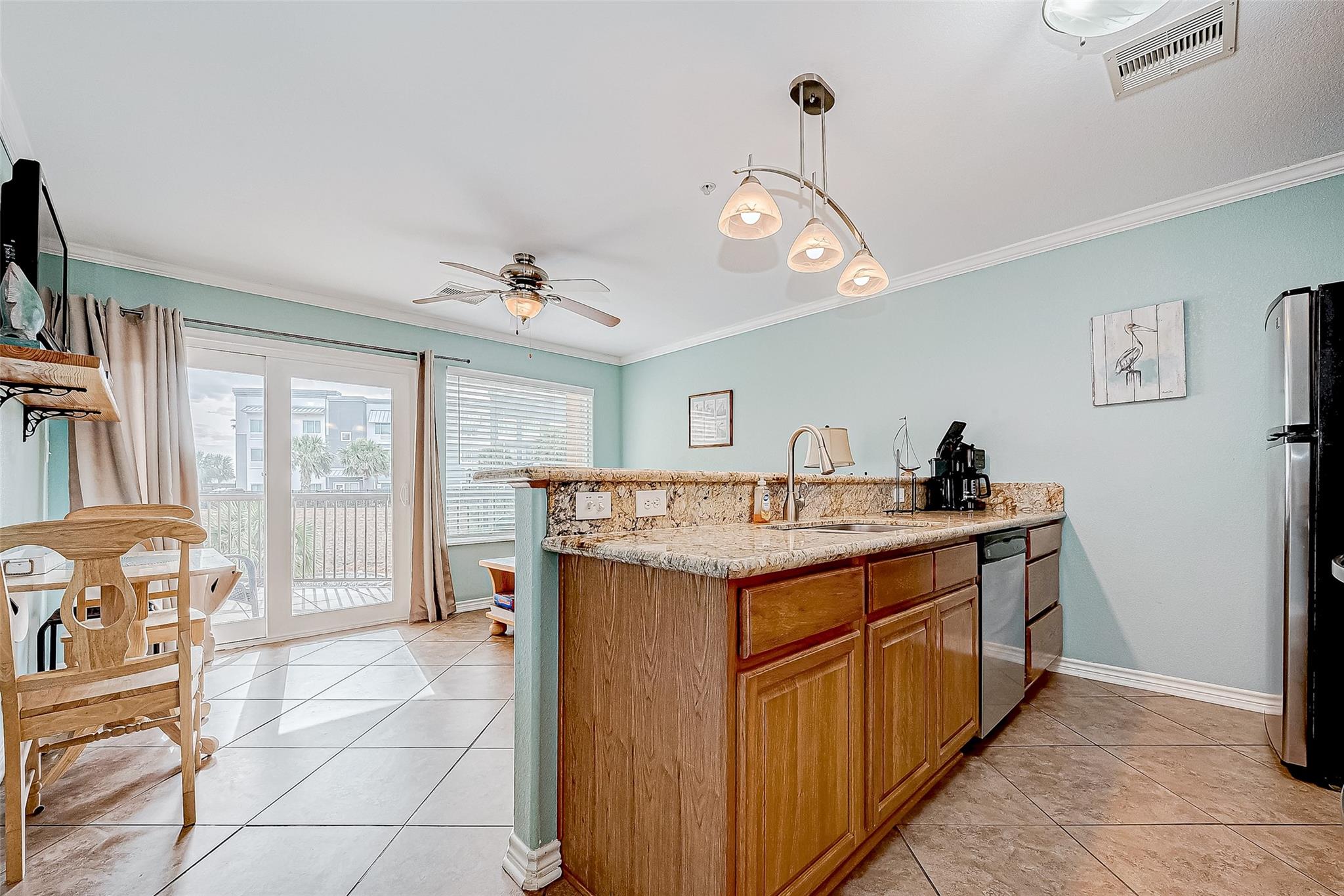 Discover coastal living at its finest with this charming 1-bedroom, 1-bathroom condominium at 9520 Seawall Blvd #135 in Galveston, Texas. Built in 2011, this 521 sq ft unit features an open-concept living area, granite countertops, and a spacious balcony overlooking the resort-style pool, with a glimpse of the Gulf. The Maravilla Condos community offers amenities such as a fitness center, multiple pools, and lush landscaping. Situated along Seawall Boulevard, residents enjoy easy access to Galveston's beaches, dining, and entertainment options, making it an ideal choice for those seeking a vibrant coastal lifestyle.