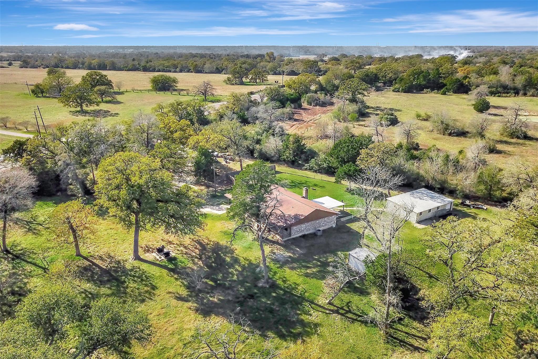 Enjoy country living in this 3 bedroom, 2 bath home set on 12.272 acres. This property offers the perfect blend of comfort, space, and outdoor recreation. Inside, you’ll find a spacious layout featuring a large kitchen perfect for cooking and gathering, and a living room with vaulted ceilings. The primary bathroom has been newly remodeled, offering a fresh, modern touch. Also, a bonus room that can be used as a 4th bedroom, home office, playroom, or hobby space. Outside, the amenities continue with a carport, fenced backyard, and multiple outbuildings, including a shop with two multi-use rooms and a portable building for additional storage. Nature lovers will appreciate the two spring-fed ponds, a deer stand, and deer feeders. Conveniently located just 12 miles from I-45 in Madisonville and 32 miles from College Station, enjoy the country with easy access to town. If you're looking for land, privacy, and a move-in ready home with room to grow, this North Zulch retreat is a must-see.