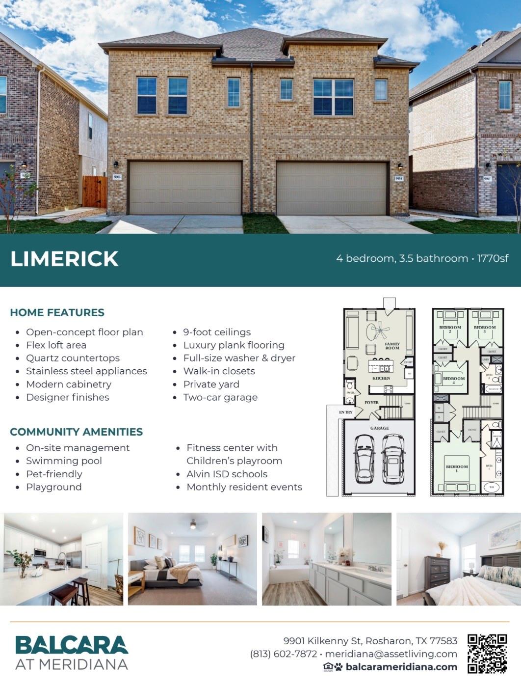 /monthExperience elevated living in this stunning 4-bedroom, 3.5-bath luxury townhouse designed with both style and functionality in mind. Featuring a spacious open-concept layout and a versatile flex loft area, this home is perfect for entertaining or creating a dedicated home office or retreat. The kitchen is beautifully appointed with quartz countertops, stainless steel appliances, modern cabinetry, and designer finishes that flow effortlessly into the living and dining spaces. Enjoy 9-foot ceilings, luxury plank flooring, and generous natural light throughout. Bedrooms are spacious with walk-in closets, and a washer and dryer are included. Additional highlights include an attached two-car garage. Community amenities feature a resort-style pool, fitness center, private playground, pet-friendly setting, on-site management, and monthly resident events for a true lifestyle experience. Monthly Move in Specials!