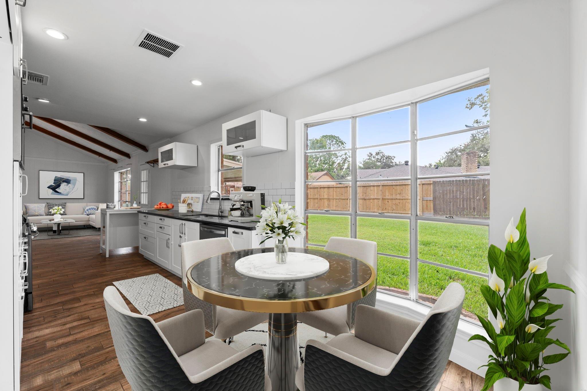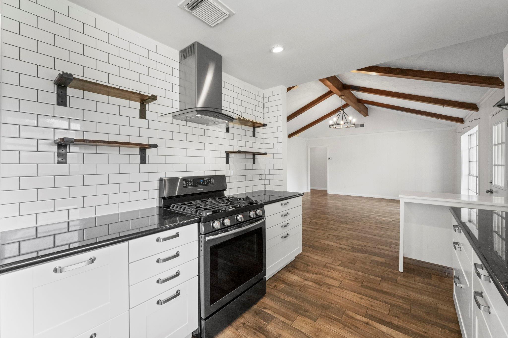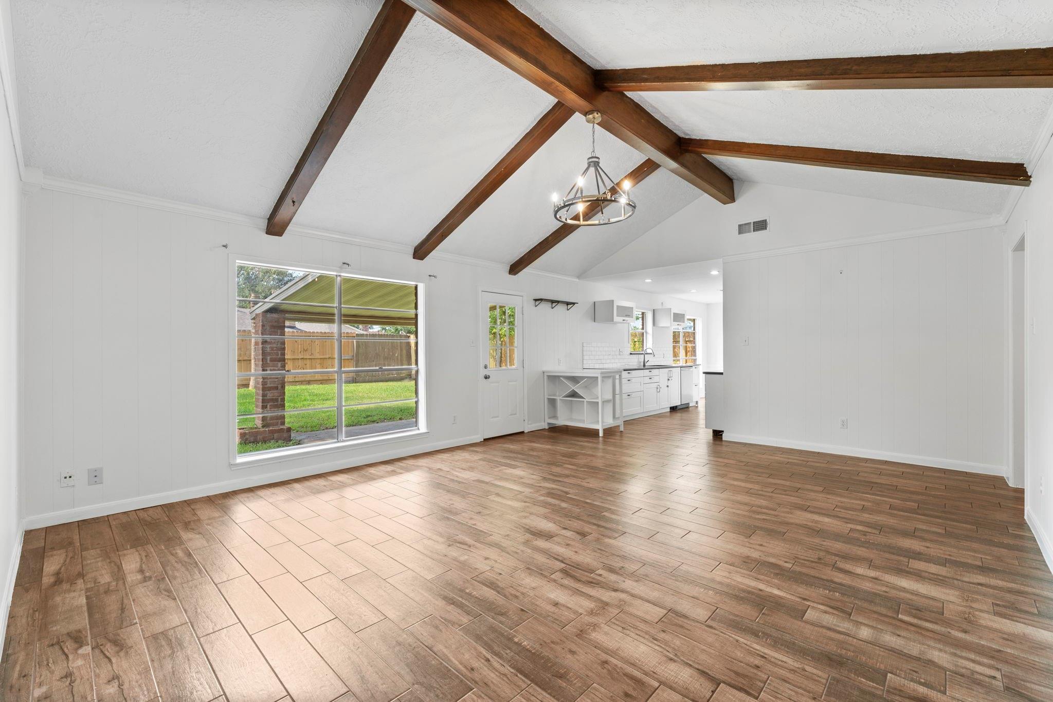 Comfort and convenience offered in this 3-Bedroom Ranch with Charming Front Porch and Updated Kitchen! Incredible location with easy access to I-10, Beltway 8, and HWY-290. Plus just minutes to HEB, Starbucks, and walking distance to Spring Branch ISD Schools. The interior is freshly painted and upon entering, you will be wowed by cathedral vaulted ceilings in the family room with beam accents and wood-look tile throughout. The open kitchen and family room concept makes the layout feel spacious and perfect for entertaining and day-to-day living. Ample green space in the backyard and the rear covered patio makes it easy to enjoy year round.