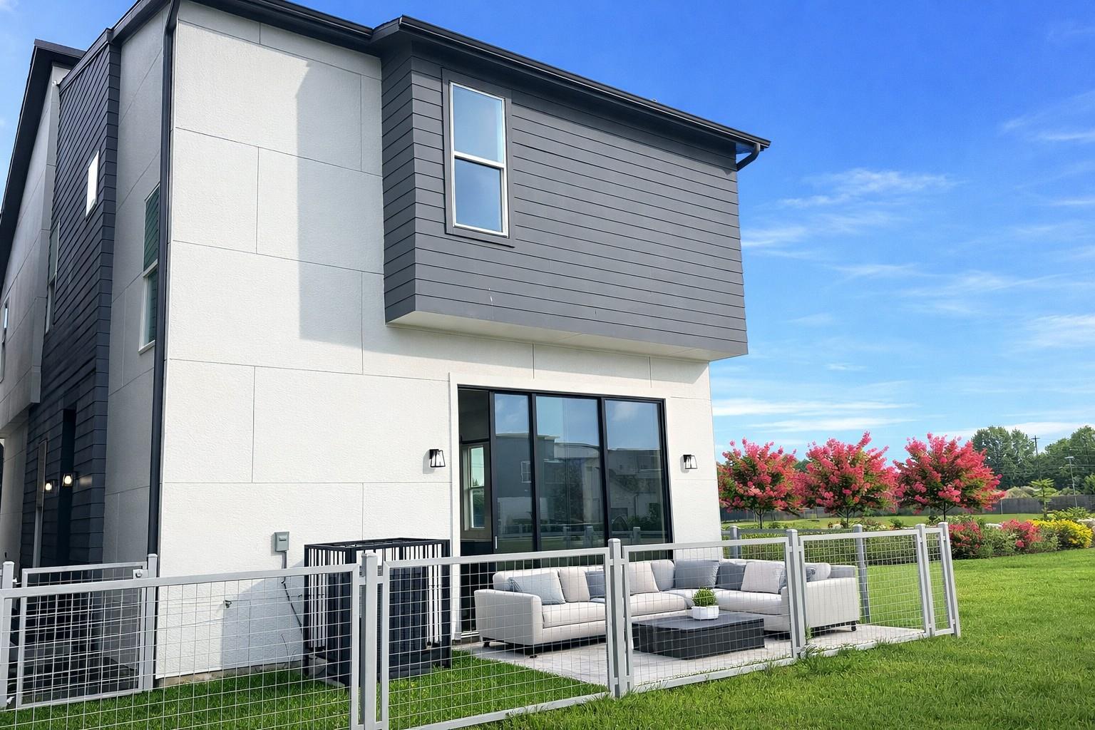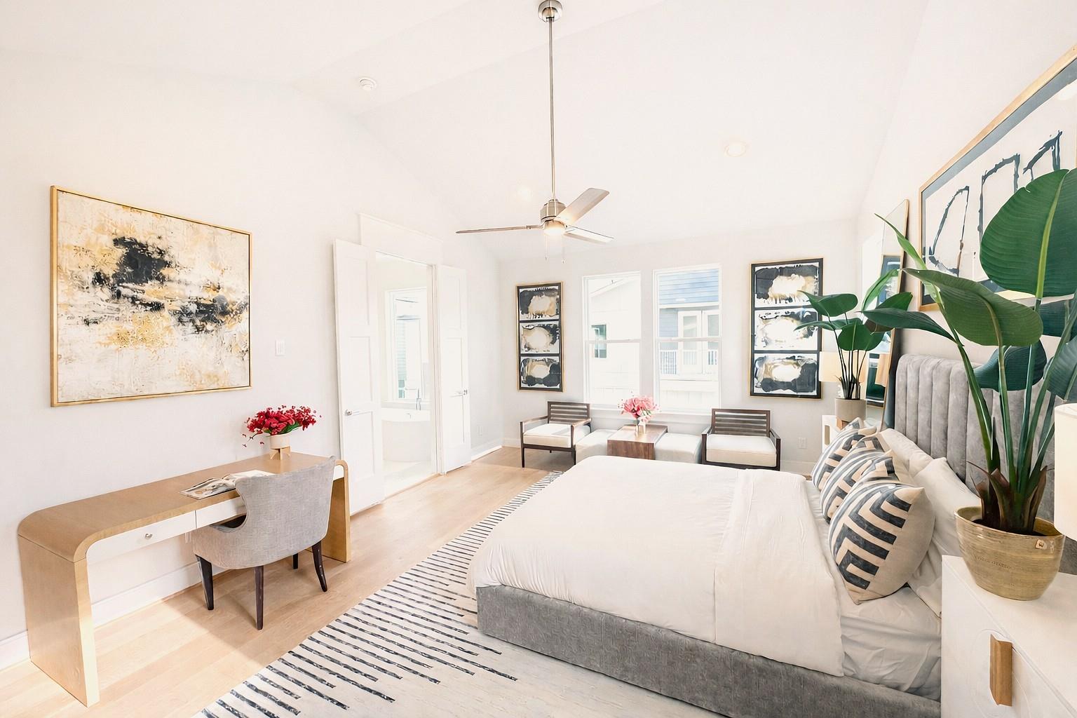 FOUR BEDROOM NEW CONSTRUCTION HOME Next to the Park! Tons of Natural Light! Enjoy Being Next to the Park w/ Fenced-in Back Patio/Yard. First-floor living & dining areas feature soaring 12-foot ceilings, wide plank wood flooring. HUGE 10 FT Tall Tri-Paneled sliding glass doors open to a fenced yard, extending the living space outdoors. The kitchen is appointed with sleek European-style soft-close cabinetry, under-cabinet lighting, and premium Fisher Paykel Appliances. Built-in Mud Room off from garage. Upstairs are 4 Bedrooms and 3 Bathrooms. Primary Bedroom has Vaulted Ceilings and Wide Plank Wood Flooring. The spa-inspired primary bath features a freestanding soaking tub, a seated walk-in shower, and Hansgrohe fixtures. Located in the Avondale community, residents enjoy access to a resort-style pool and park/trails.