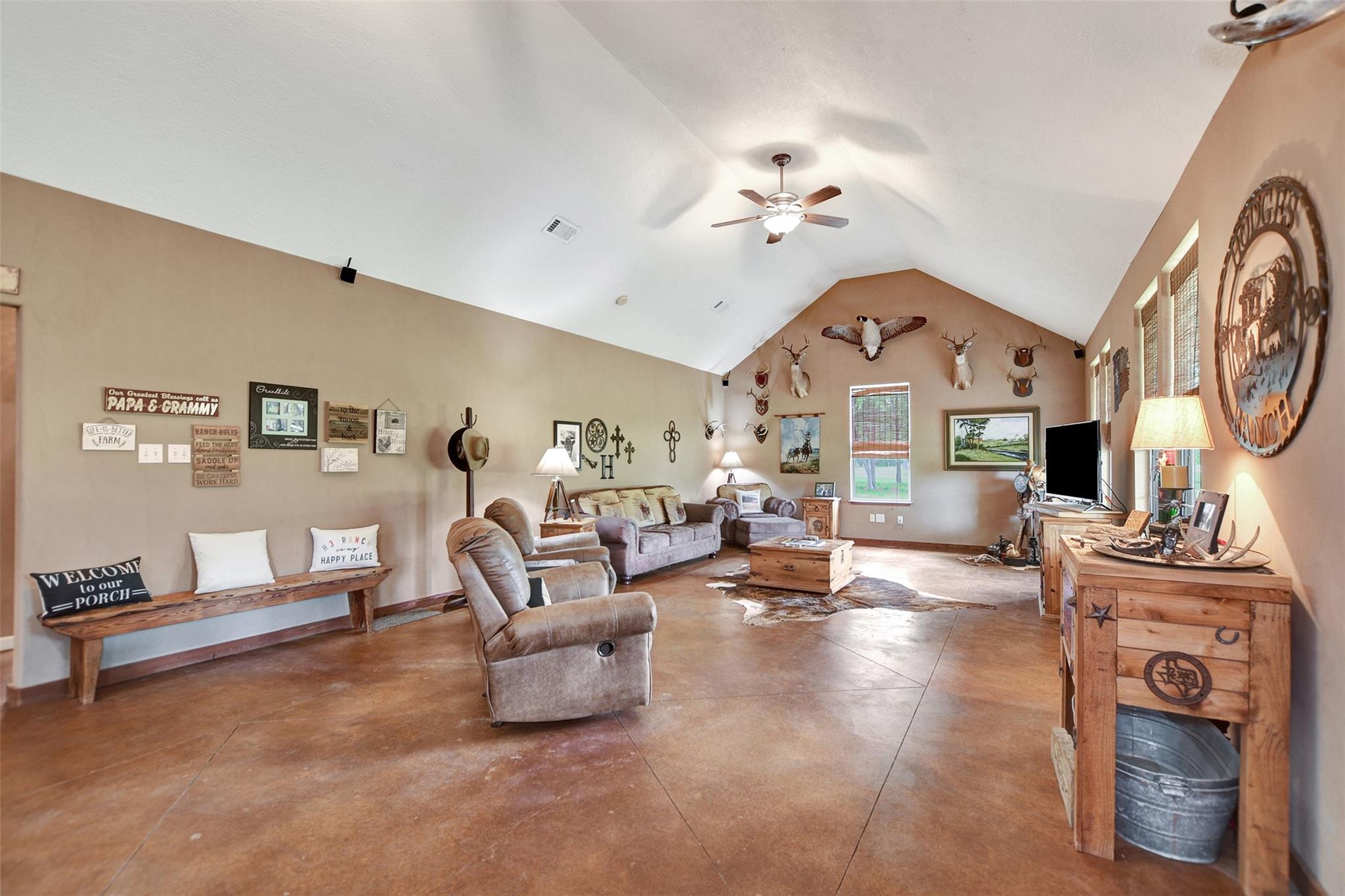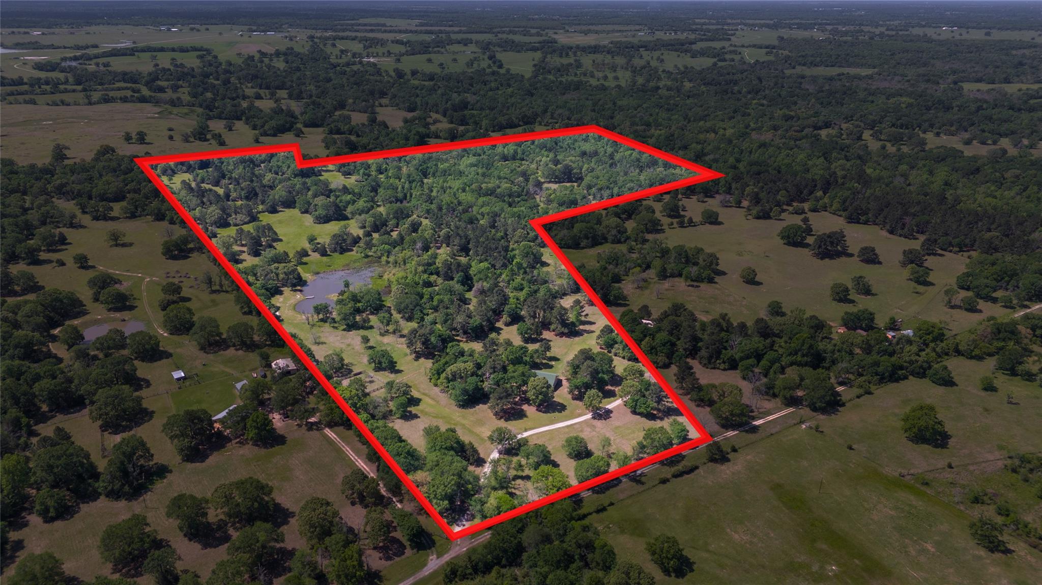 Peaceful retreat on 87 acres in Madison County! Entering onto the property you will find a tree lined drive leading you up to the ranch home. The ranch house is equipped with a 2 bedroom/1 bathroom open concept floor plan. Stepping inside the home you will find concrete floors, large windows letting in the natural light, and a spacious kitchen/family room ready to entertain your next family gathering! The land has a mix of open, and wooded areas with cedar, pine, and large oak trees. The property has been mainly used for running cattle, and recreational purposes. Perimeter fenced, multiple cross fences, creek running along the back, and a large pond gives the buyer endless possibilities. Barn on the property is about 30X50 concrete floors with water and electricity, along with a "party barn" that allows for extra living quarters. Property is currently Ag-Exempt. This is the 2nd owner in over 100 years- properties like this don't come around often. Come take a look today!
