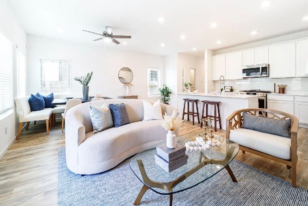 /monthExperience refined living in this beautifully designed 3-bedroom, 2.5-bath luxury townhouse offering a perfect blend of style, comfort, and functionality. Thoughtfully crafted with an open-concept layout, this home features a versatile flex loft area ideal for a home office, media space, or additional living area. The gourmet kitchen is appointed with quartz countertops, stainless steel appliances, modern cabinetry, and sleek designer finishes, all seamlessly flowing into the spacious living and dining areas—perfect for both everyday living and entertaining. High 9-foot ceilings and luxury plank flooring enhance the home’s bright and contemporary feel. Retreat to generously sized bedrooms with walk-in closets, while enjoying the convenience of a washer and dryer included and an attached two-car garage. Residents enjoy access to exceptional community amenities, including a resort-style swimming pool, fitness center, private playground, and pet-friendly environment. Monthly Specials!