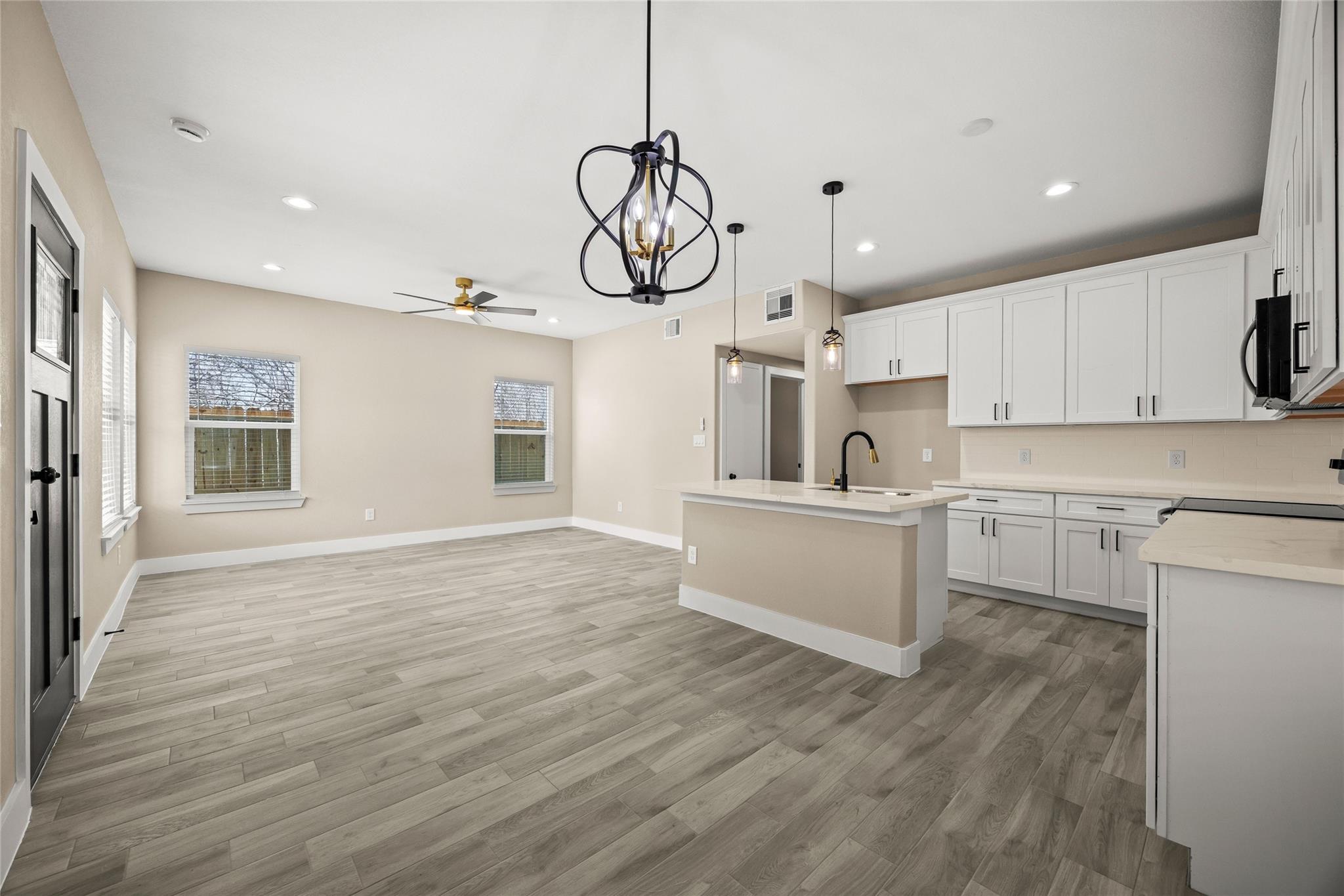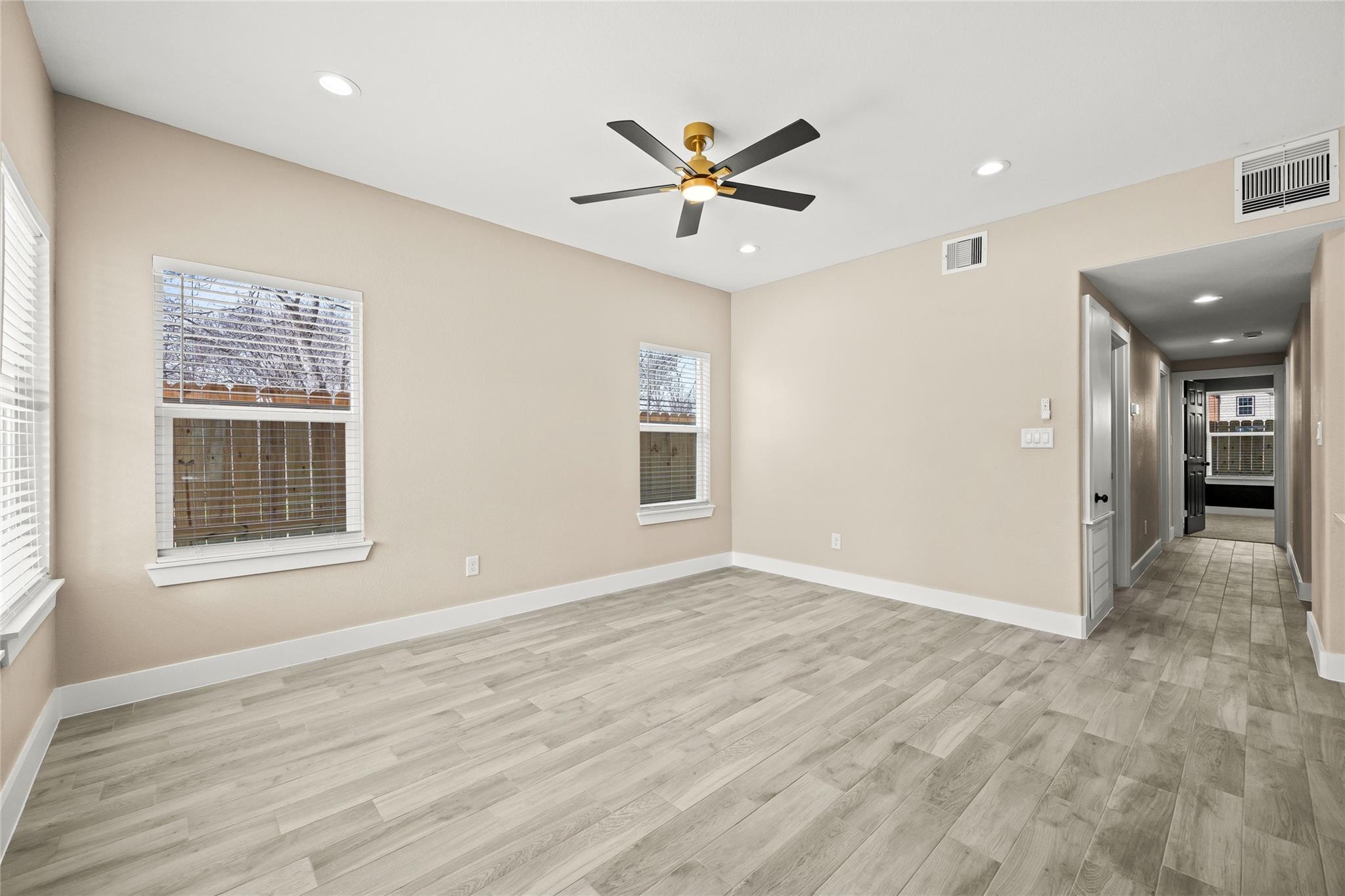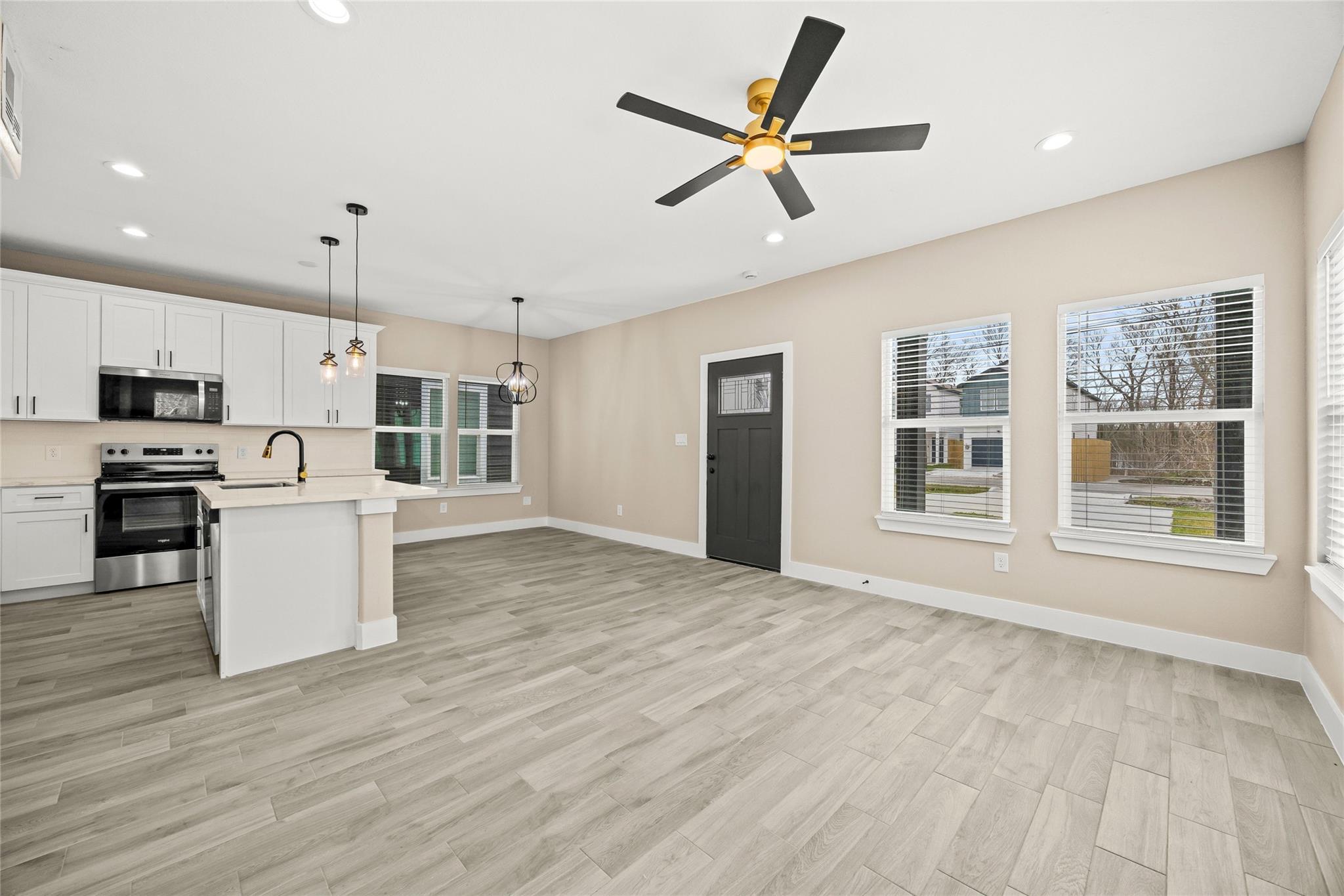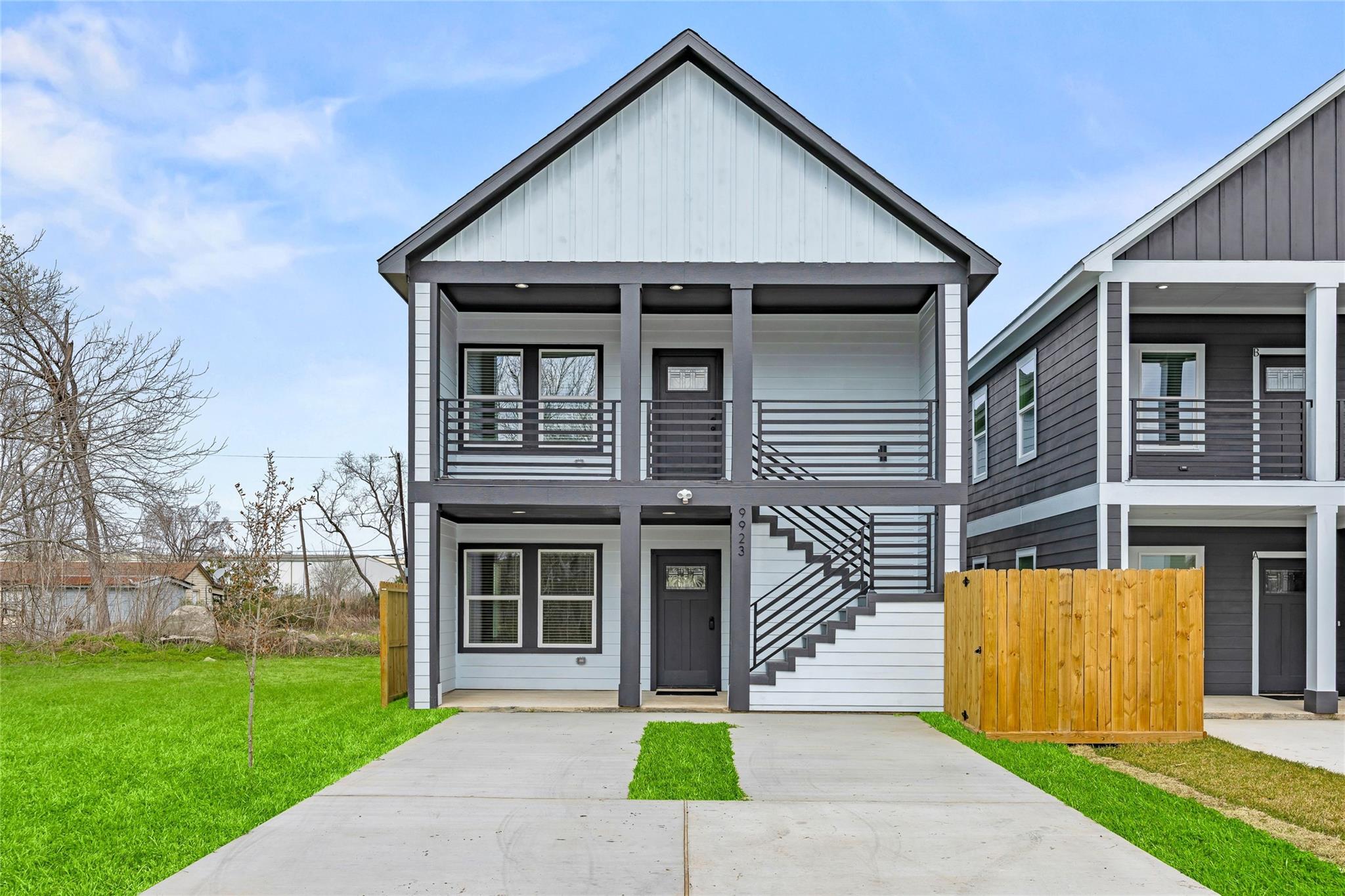 Completed this year, this modern duplex offers two beautifully finished 3-bedroom, 2-bath units, each with open-concept living, sleek white cabinetry, stainless steel appliances, subway tile backsplash, and light flooring. Spacious bedrooms include plush carpet, double-door closets, and ceiling fans, while contemporary bathrooms feature elegant tile work and black fixtures. Each unit has private entrances. With central electric cooling, in-unit laundry connections, and a corner lot setting, this income-producing property is ideal for investors seeking a turnkey opportunity near major Houston employment hubs.