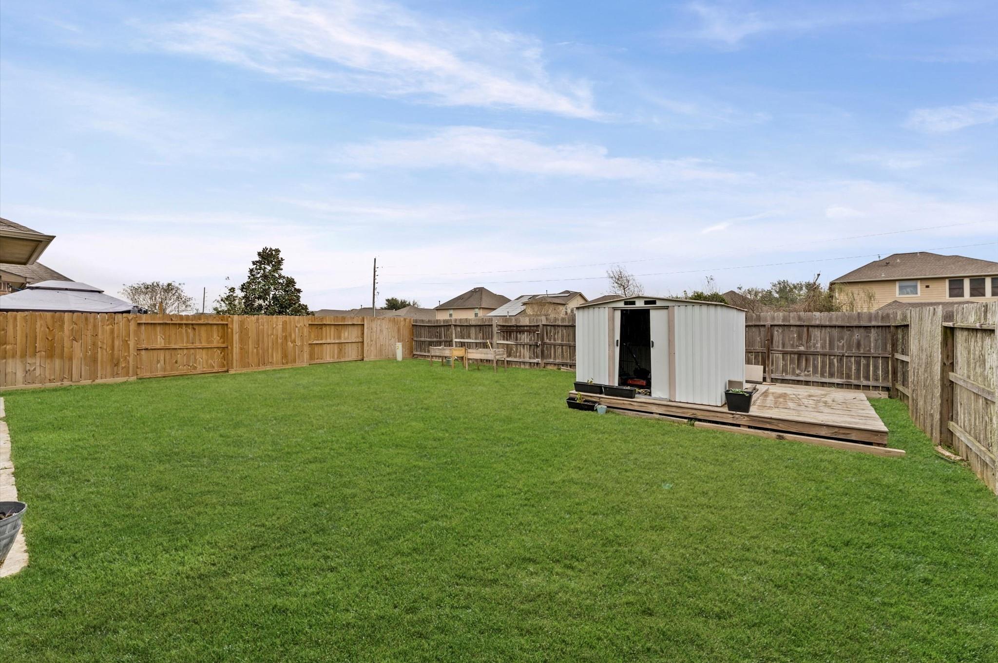 ExteriorRoof:CompositionFoundation:SlabPrivate Pool:NoExterior Type:Brick,WoodLot Description:Greenbelt,Subdivision LotWater Sewer:Water DistrictFront Door Face:WestExterior:Back Yard Fenced,Covered Patio/Deck,Sprinkler System,Storage Shed