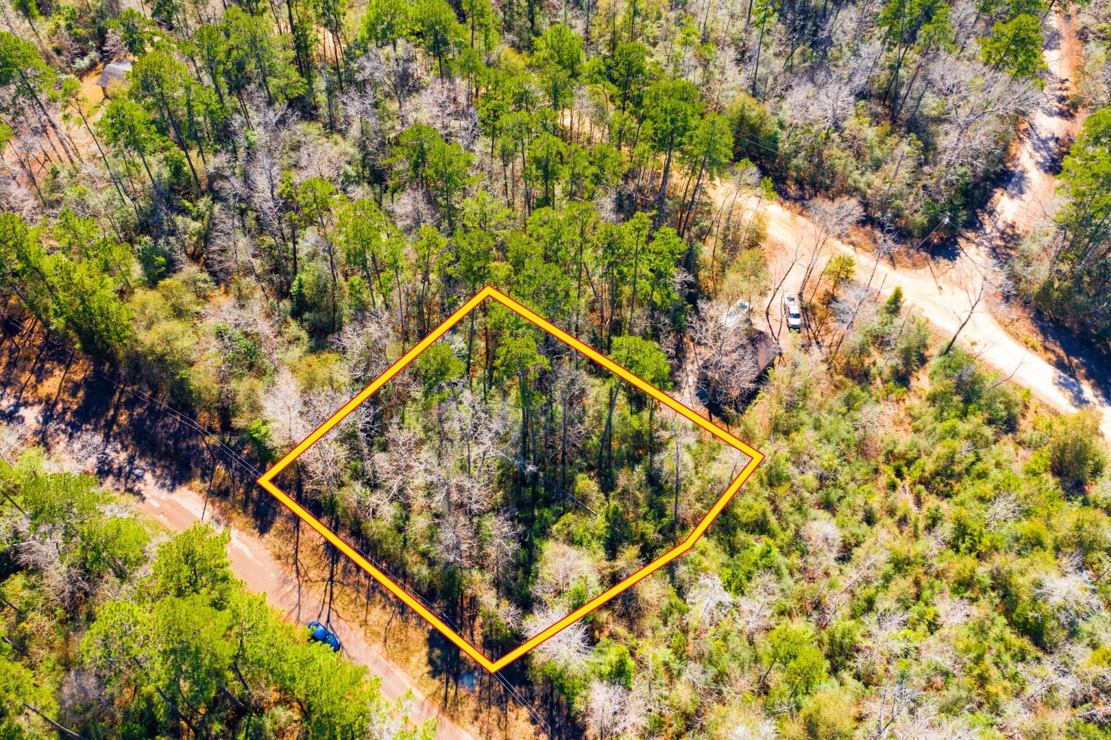 This 0.31-acre wooded corner lot in Ivanhoe, Tyler County, Texas sits walking distance from Lake Tristan in the Lake Galahad community. The flat, tree-covered property features city water through Monarch Water, electricity through Sam Houston Electric, DSL and cable internet, and cell and landline phone service. A septic tank is required. Short-term RV camping is allowed with a 17-day onsite and 5-day offsite rotation with a city permit. Mobile homes and single-family site-built homes with a minimum of 1,000 sq ft are also permitted. Big Thicket National Preserve is 21 minutes away. Lake Sam Rayburn is 45 minutes away. Owner financing available with no credit checks and no buyer closing fees.