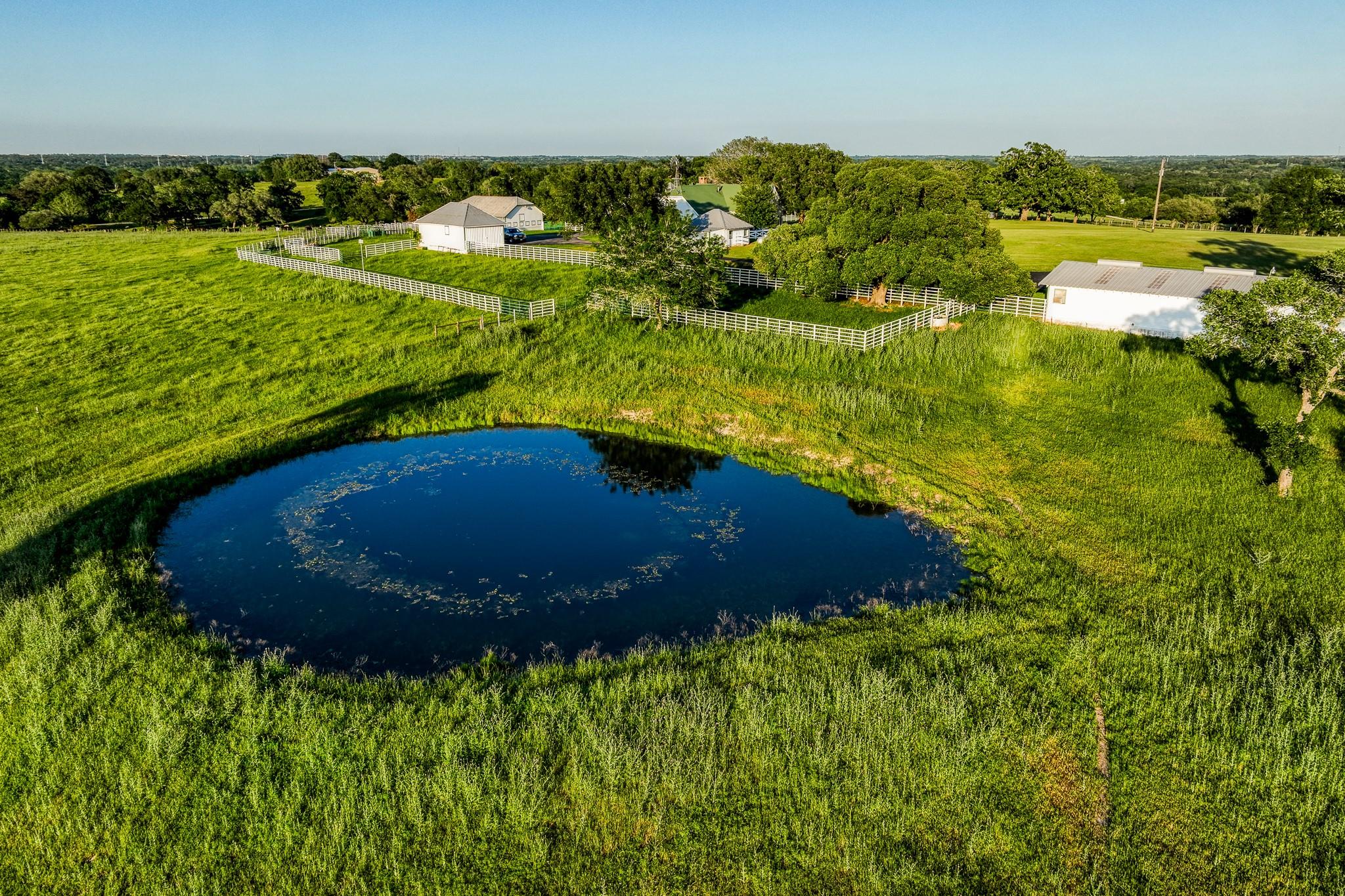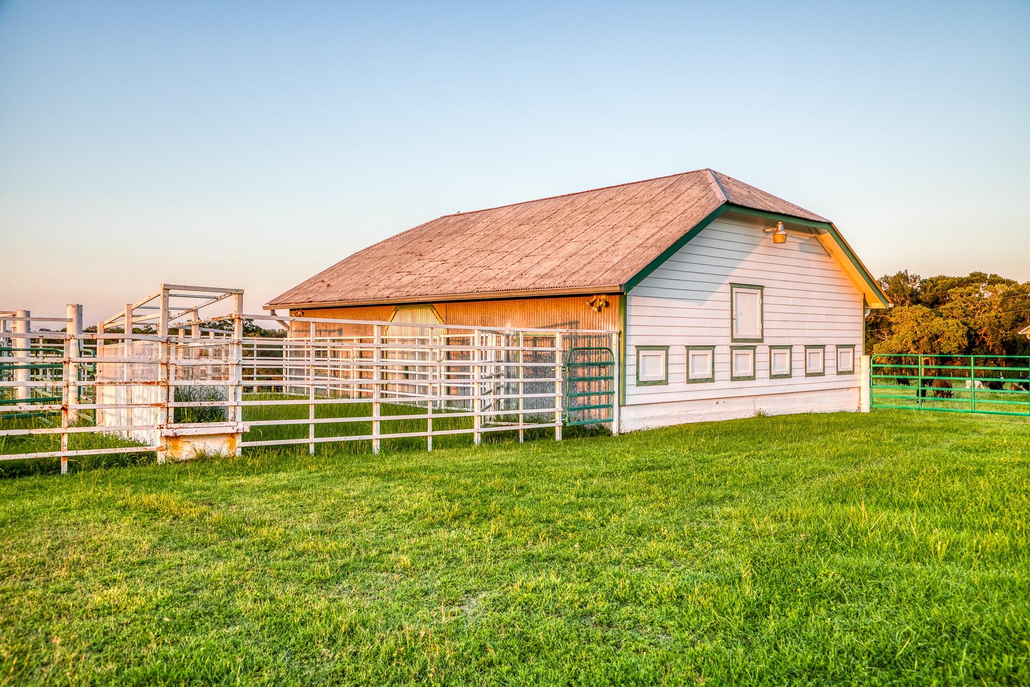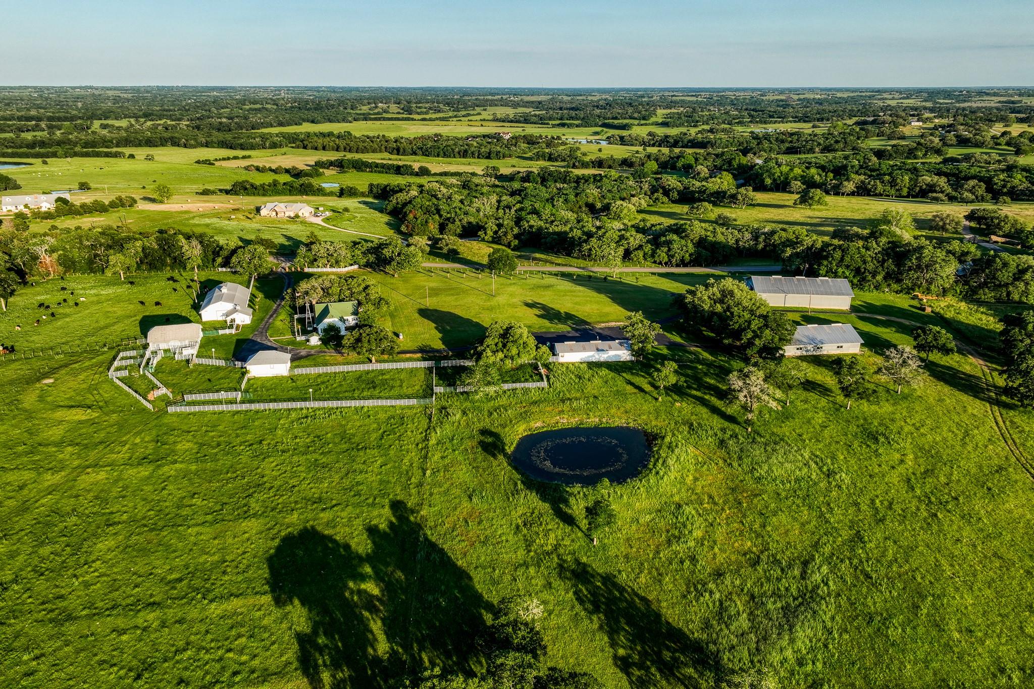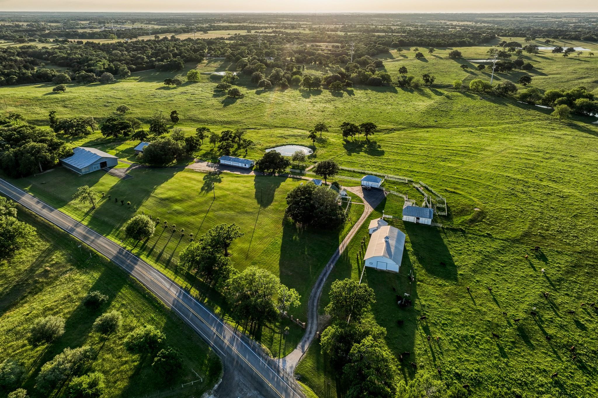 On a scenic high ridge, the historic headquarters of the Bar O Ranch offers sweeping views across the timeless Texas countryside. Once the heart of a sprawling working ranch, this exceptional property is ready to be passed on to the next generation. The main residence preserves the craftsmanship and character of the era with barns/outbuildings reflect the same charm. Two expansive barns with concrete slabs-present opportunities for conversion into additional living space, automobile showcase, or a community or event venue. The classic English country-style horse barn features wooden stalls and separate horse pasture. Majestic live oak trees add beauty and a sense of permanence throughout the ranch. With a 40-50 foot elevation change, the ridge offers spectacular sunrise and sunset views, particularly to the west overlooking the ranch below. Multiple sites provide the opportunity to create a dream home in a peaceful, private setting that defines the true essence of ranch living.